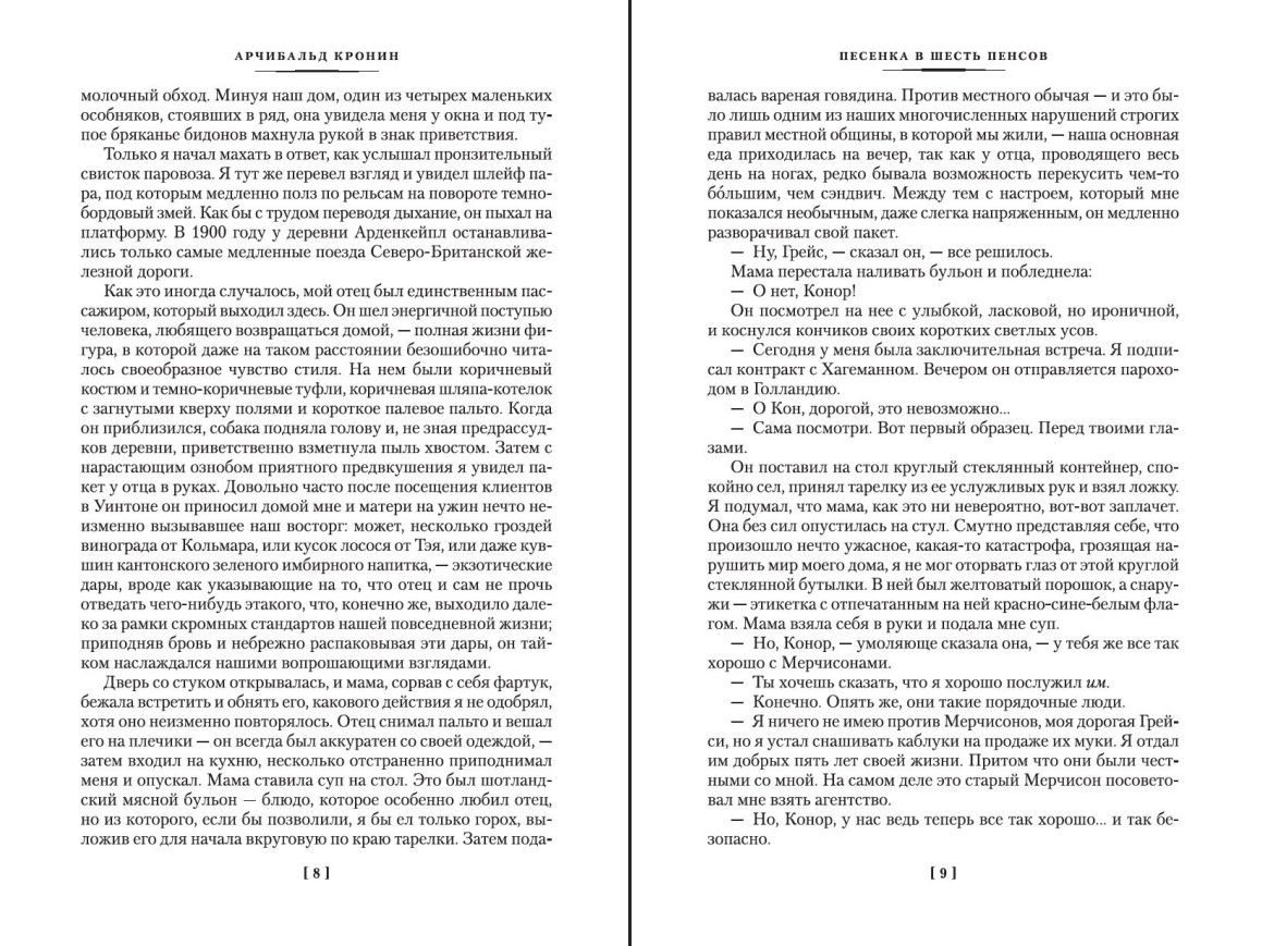 «Песенка в шесть пенсов и карман пшеницы» — две первые строчки известной английской песенки, а также названия не менее известных двух произведений Арчибальда Кронина, созданных в лучших традициях «романов воспитания» Диккенса, Бальзака и Флобера. Рассказ о судьбе юноши из Шотландии, мечтательного, амбициозного и наивного отразил многие автобиографические факты из жизни автора. О его приключениях, победах и поражениях, потерях и обретениях, влюбленностях и разочарованиях Кронин повествует с теплым юмором и с тем проникновенным, вызывающим сочувствие и сопереживание реализмом, который отличает его оригинальный творческий почерк.