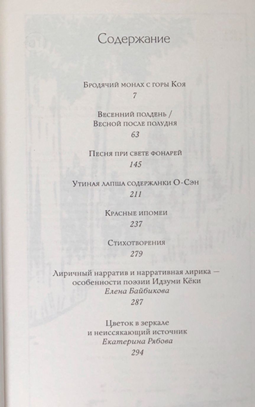 Внимание ко всему сумрачному, потустороннему, мерцающему, новаторский язык, эксцентричная натура и искренняя преданность одной идее позволили Идзуми Кёке создать свой мир — хрупкий, уединенный и столь причудливый, что у него не могло быть ни последователей, ни подражателей.