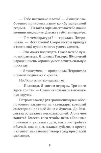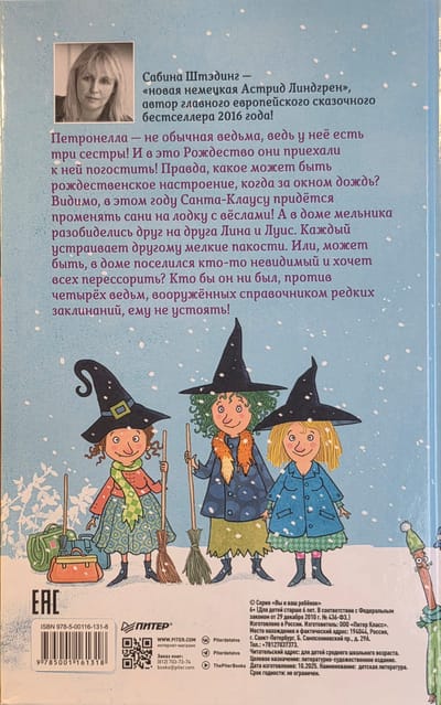 Петронелла - не обычная ведьма, ведь у нее есть три сестры! И в это Рождество они приехали погостить! Правда, какое может быть рождественское настроение, когда за окном дождь? Видимо, в этом году Санта-Клаусу придётся променять сани на лодку с вёслами! А в доме мельника разобиделись друг на друга Лина и Луис. Каждый устраивает другому мелкие пакости. Или, может быть, в доме поселился кто-то невидимый и хочет всех перессорить? Кто бы он ни был, против четырёх ведьм, вооруженных справочником редких заклинаний, ему не устоять!