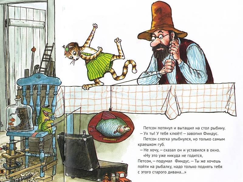 Но Петсон не хочет идти на рыбалку. На улице сыро и холодно, а ему еще нужно вскопать грядки и нарубить дров. Но Финдус знает, как вернуть хозяину хорошее настроение. И, может, ему даже удастся уговорить Петсона поиграть с ним, вместо того, чтобы работать в огороде. Ведь Финдус совсем не обычный котенок...
