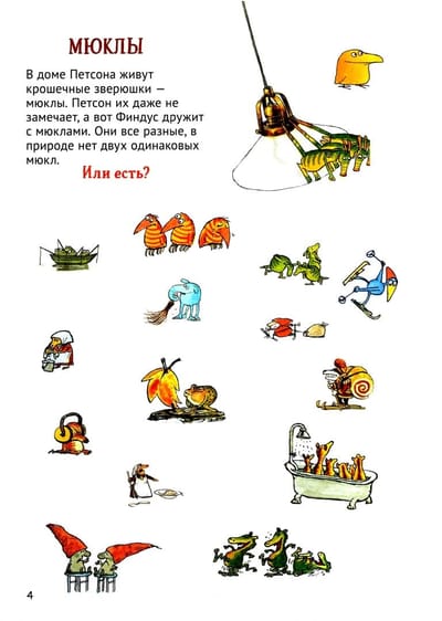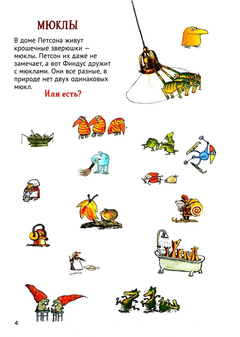 Петсон и Финдус – друзья не разлей вода. Они ловят рыбу и считают яблоки, пекут пирог и распутывают следы, устраивают театр теней и играют в индейцев. А еще проводят занятие по мюкловедению. Хочешь с ними? Тогда бери в руки карандаш, открывай книжку – и вперед, к приключениям!