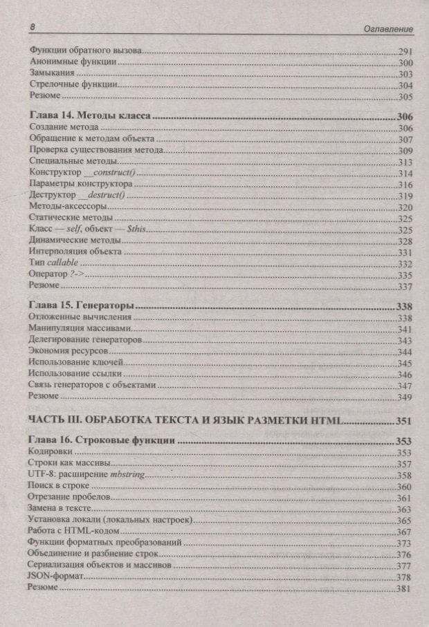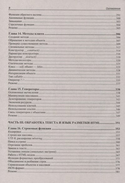 Книга предоставляет детальное и полное изложение языка PHP 8 от простого к сложному. Ее можно использовать как для изучения языка с нуля, так и для структурирования знаний, изучения тонких моментов синтаксиса и новых возможностей последней версии. Описываются все значимые нововведения. Рассматриваются новые типы, атрибуты, перечисления, именованные аргументы, сопоставления, объединенные типы, новые операторы ??= и ?-> и многое другое. Основной упор в книге делается на объектно-ориентированные возможности языка, поэтому классы и объекты рассматриваются практически с первых глав. Приведено описание синтаксиса PHP, а также инструментов для работы с массивами, файлами, СУБД PostgreSQL, Redis, регулярными выражениями, графическими примитивами, сессиями и т. д. По сравнению с предыдущей книгой авторов «PHP 7» добавлены 23 новые главы, а остальные обновлены или переработаны. На сайте издательства находятся исходные коды всех листингов.