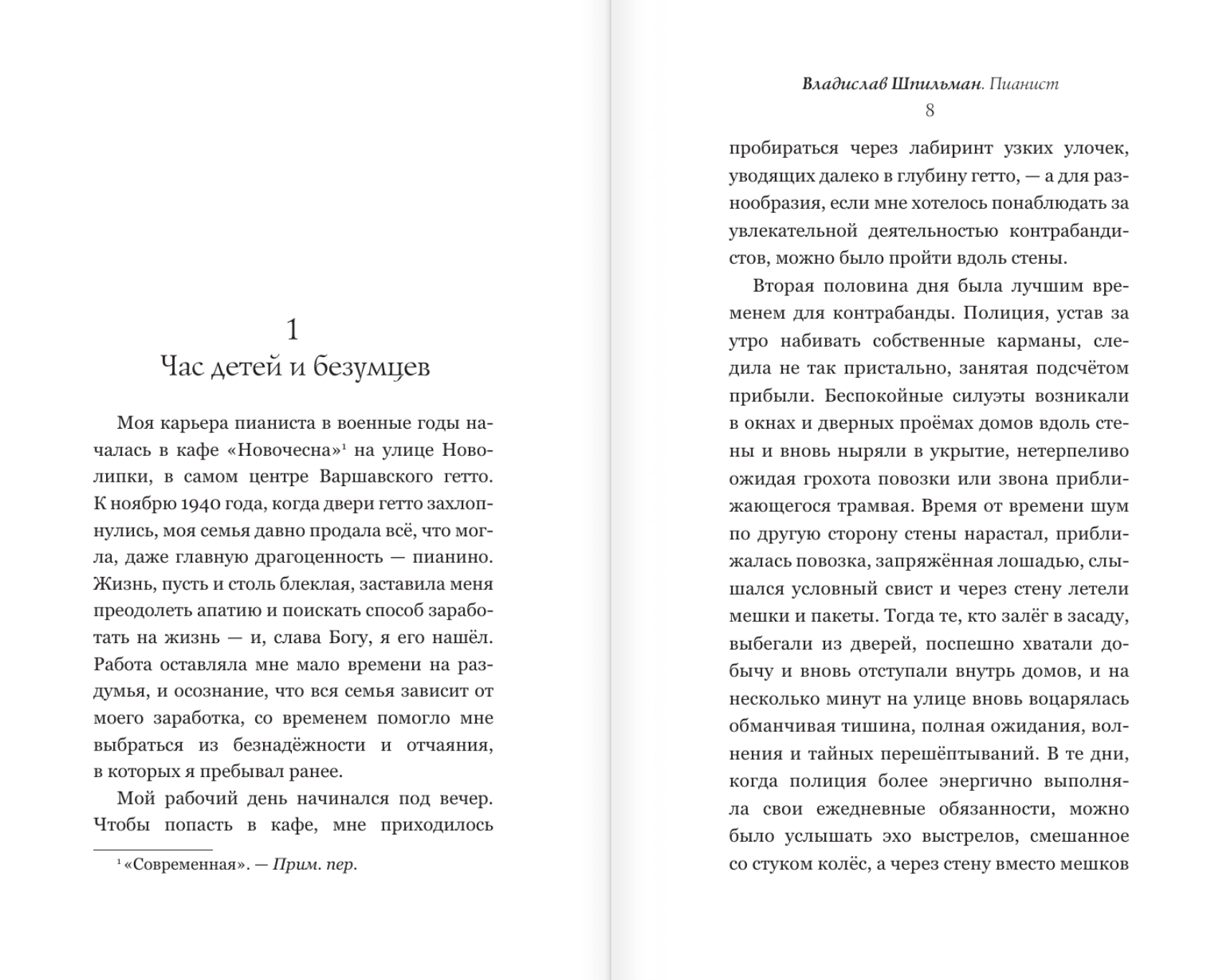 Книга выдающегося польского пианиста и композитора Владислава Шпильмана рассказывает о тяжёлых испытаниях, выпавших на его долю в годы Второй мировой войны в Варшавском гетто. Он не просто пытался выжить, но по мере сил участвовал в сопротивлении врагу, пришедшему на родную землю. Однако впоследствии именно помощь немецкого офицера позволила ему спастись.