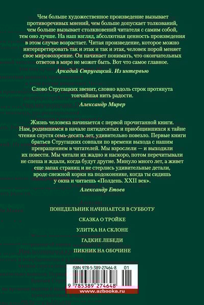 Братьев Аркадия и Бориса Стругацких читателям представлять не надо. Их произведения — состоявшаяся классика не только фантастики, но и современной русской литературы в целом.