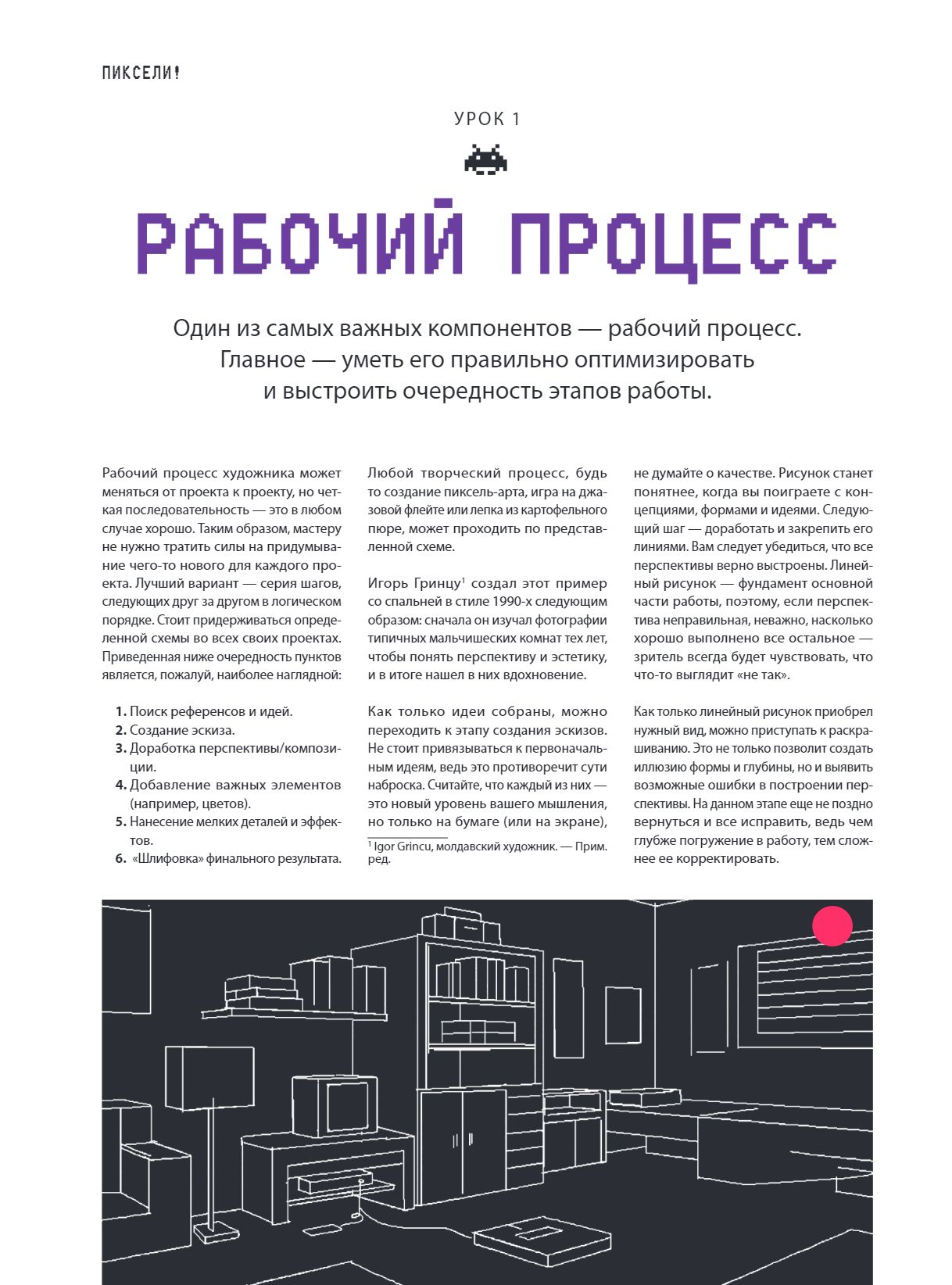 Перед вами — полное руководство по созданию пиксель-арта! Эта книга идеально подойдет для начинающих художников, которые мечтают создавать пиксельную графику и анимацию, а также для фанатов пиксельных компьютерных игр.