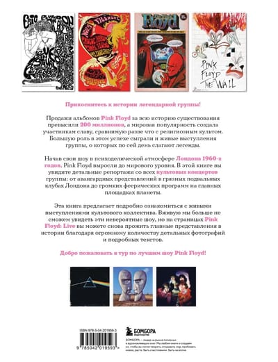 Познакомьтесь подробно с живыми выступлениями любимой группы благодаря более чем сотне уникальных фотографий. Вживую мы больше не сможем увидеть эти невероятные шоу, но на страницах Pink Floyd: Live вы можете снова прожить главные представления в истории благодаря огромному количеству детальных изображений и подробных текстов.