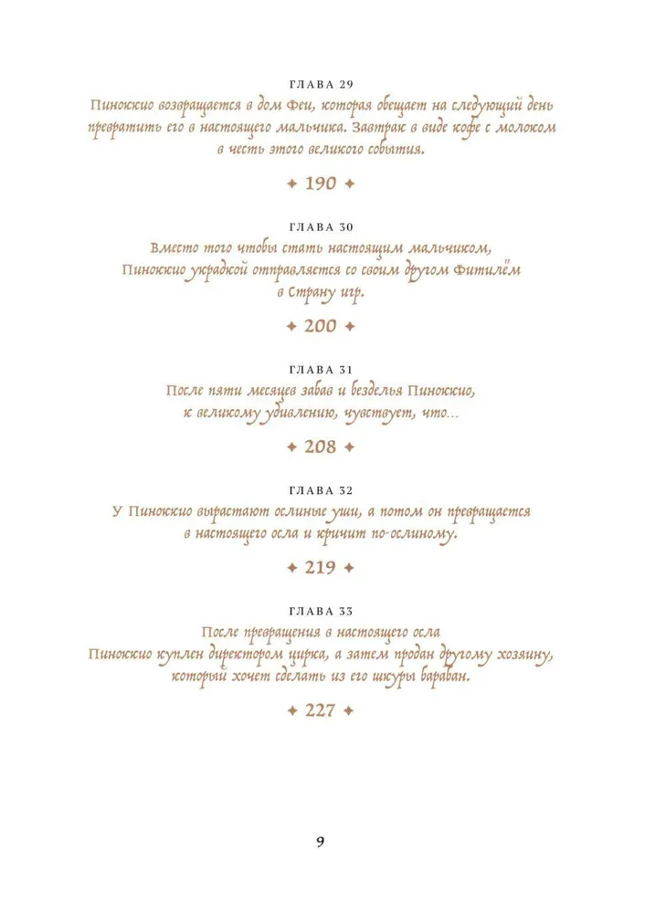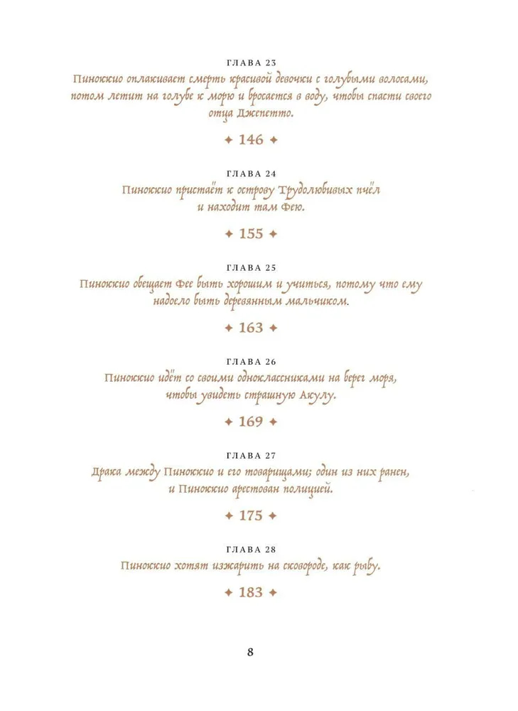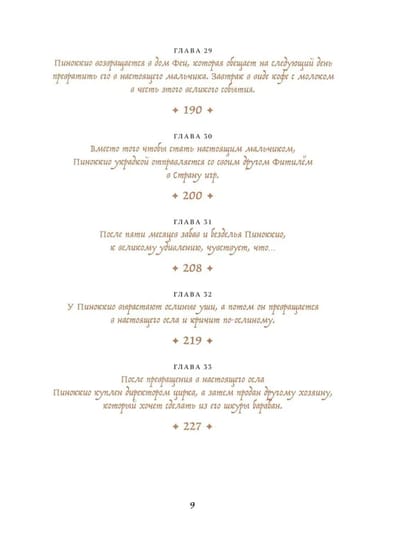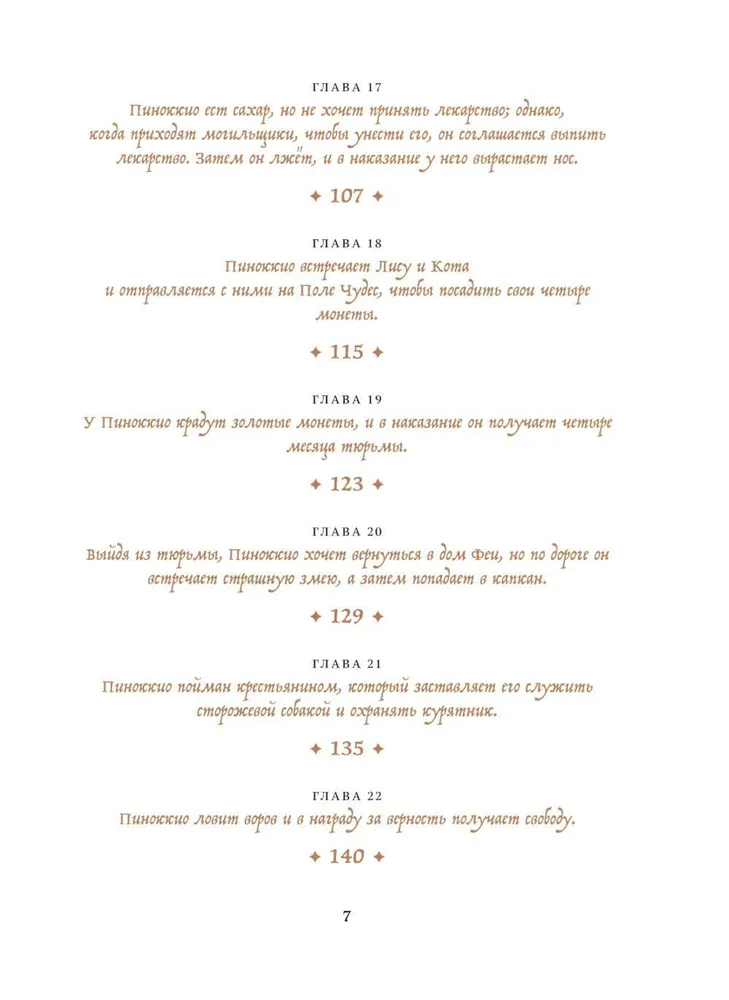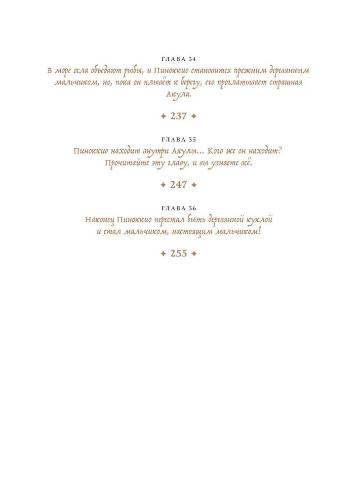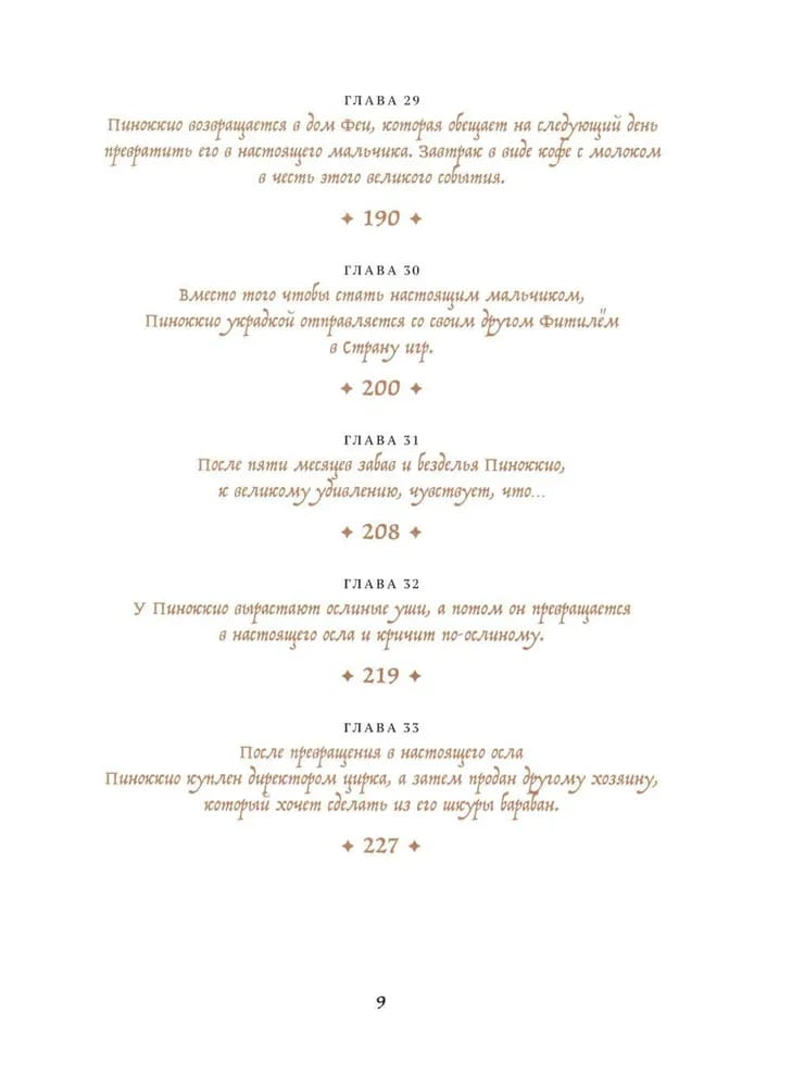 Сказка о Пиноккио — одна из самых известных и любимых историй в мировой литературе. Хотя для большинства российских детей его заменил Буратино, а также множество мультфильмов и киноинтерпретаций. Однако в оригинале совсем другой сюжет и совсем другая философия, и есть даже библейские отсылки. Это история взросления, возрастания из существа бессмысленного в любящего сына, который рискует своей жизнью, чтобы спасти отца. Это история о человечности. Какой бы ни был Пиноккио озорной бездельник, в какие бы ни попадал передряги, у него остается доброе сердце и недосягаемая мечта — стать настоящим мальчиком. И читатели всех поколений всем сердцем любят его и желают его мечте сбыться.