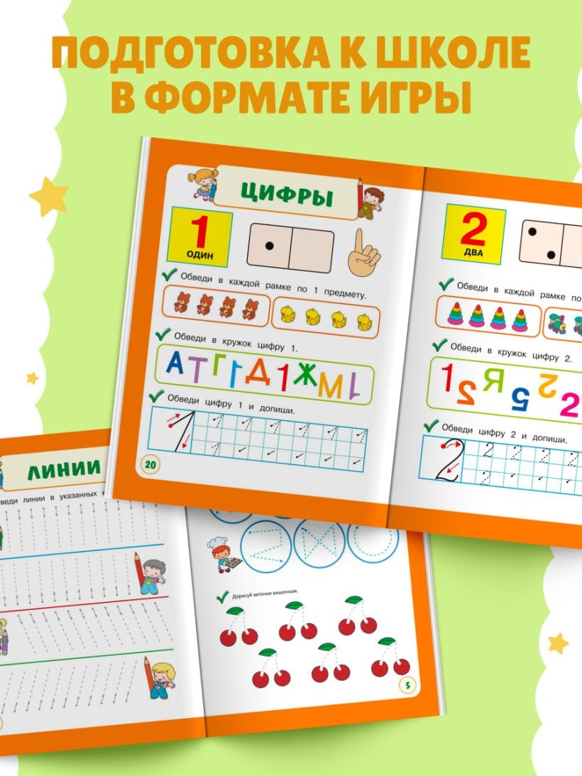 Это развивающее пособие поможет мальчикам и девочкам развить мелкую моторику в игровой форме, а также параллельно получить базовые знания — выучить буквы и цифры. Ведь во время письма процесс усвоения проходит гораздо быстрее. Обучение письму должно быть поэтапным: необходимо сформировать графические навыки и научить ребенка правильно и аккуратно работать карандашом. Тогда процесс письма в школе будет простым и интересным. Занимаясь, ребенок будет обводить линии по пунктиру, проходить лабиринты, рисовать по клеточкам, писать буквы и цифры.