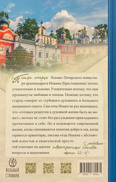 Письма старца Псково-Печерского монастыря архимандрита Иоанна (Крестьянкина) читать утешительно и полезно. Утешительно потому, что они проникнуты любовью и теплом. Полезно потому, что старец говорит от глубокого духовного и большого жизненного опыта. Сам отец Иоанн не раз напоминал, что «готовых рецептов в духовной жизни быть не может», потому не стоит без рассуждения прикладывать прочитанное к себе. Но в водовороте современной жизни, когда смешиваются понятия добра и зла, когда теряются ориентиры, письма отца Иоанна с абсолютной ясностью и Евангельской простотой отвечают на многие вопросы и недоумения.