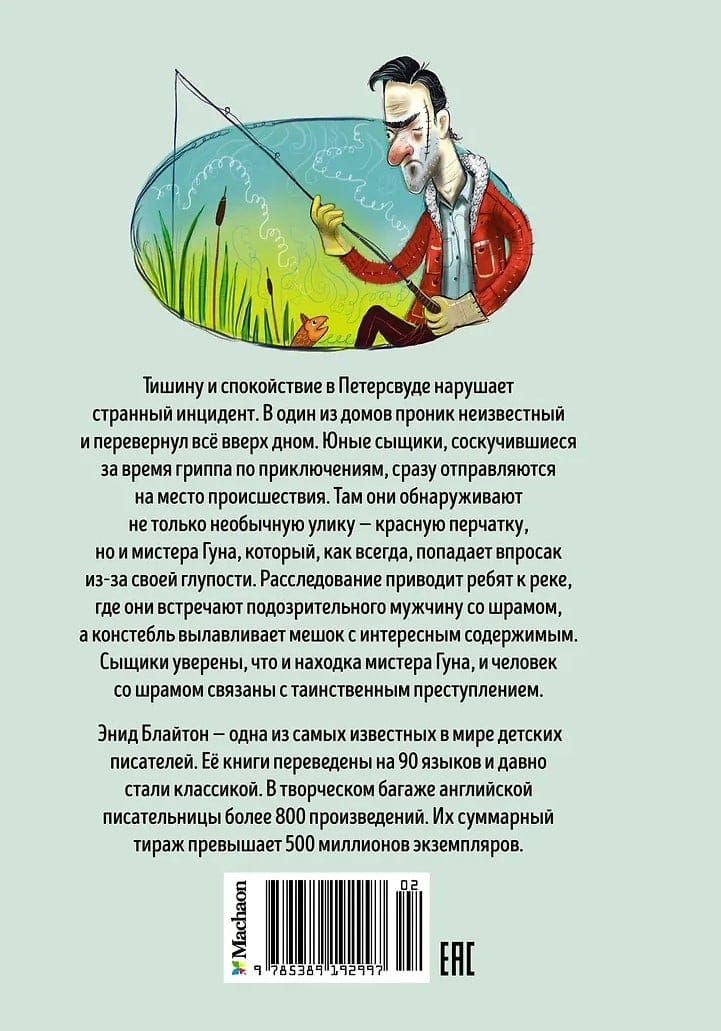 Тишину и спокойствие в Петерсвуде нарушает странный инцидент. В один из домов проник неизвестный и перевернул всё вверх дном. Юные сыщики, соскучившиеся за время гриппа по приключениям, сразу отправляются на место происшествия. Там они обнаруживают не только необычную улику — красную перчатку, но и мистера Гуна, который, как обычно, попадает впросак из-за своей глупости. Расследование приводит ребят к реке, где они встречают подозрительного мужчину со шрамом, а констебль вылавливает мешок с необычным содержимым. Сыщики уверены, что и находка мистера Гуна, и человек со шрамом связаны с таинственным преступлением.