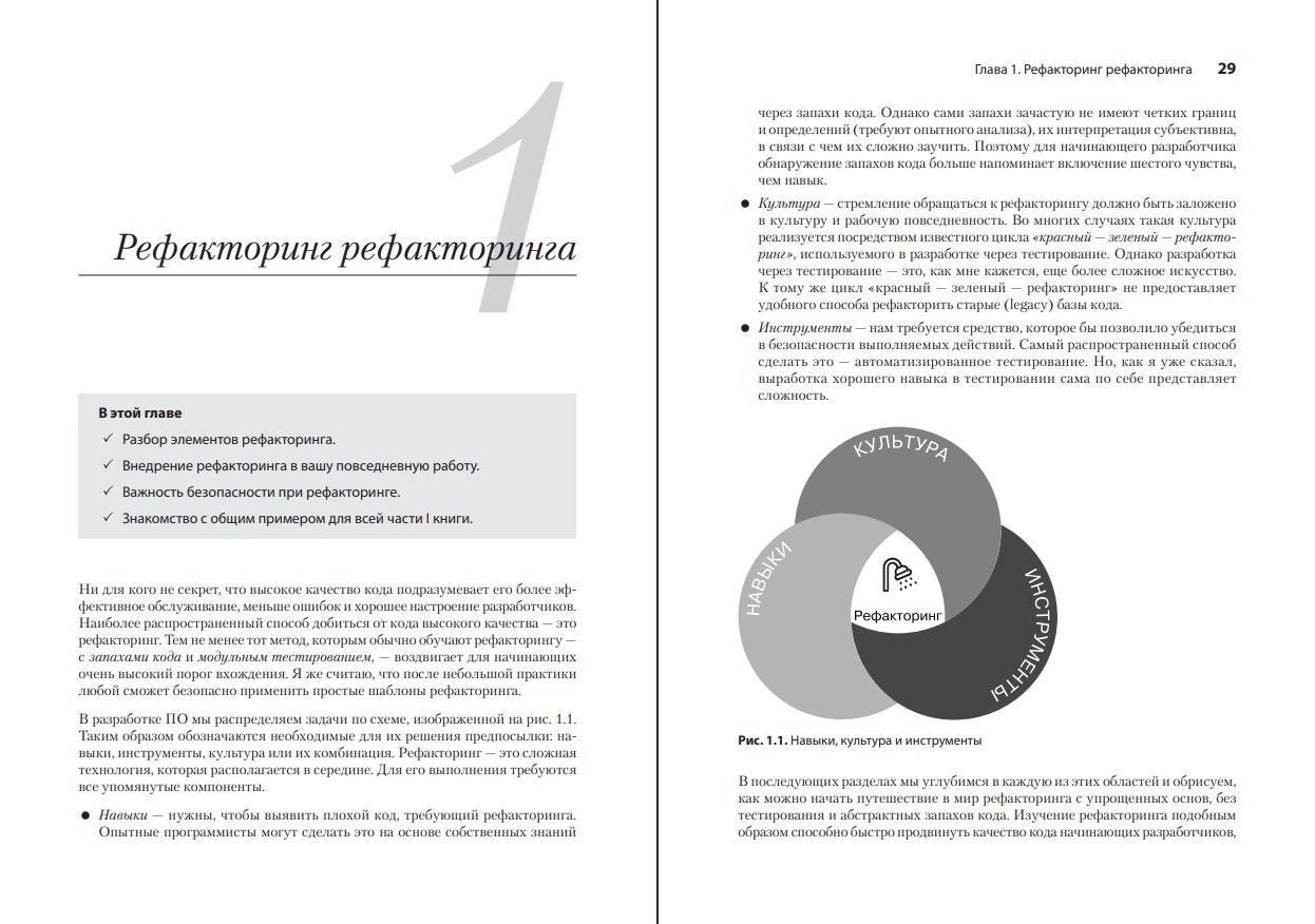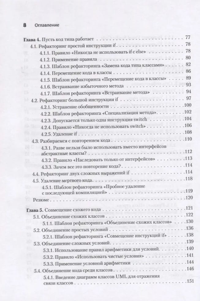 В каждой кодовой базе есть ошибки и слабые места, которые нужно найти и исправить. Правильный рефакторинг сделает ваш код элегантным, удобным для чтения и простым в обслуживании. Познакомьтесь с уникальным подходом, позволяющим реализовать любой метод в пяти строках кода. И не забывайте про тайну, хорошо известную большинству senior-разработчиков: иногда проще ухудшить код и вернуться к его исправлению позже. «Пять строк кода» — это свежий взгляд на рефакторинг для разработчиков любого уровня. Вы узнаете, когда проводить рефакторинг, как использовать паттерны, а также научитесь определять признаки, которые говорят о том, что код необходимо удалить  Для разработчиков всех уровней. В примерах используется доступный и понятный синтаксис TypeScript, который позволяет перейти к любому языку высокого уровня.