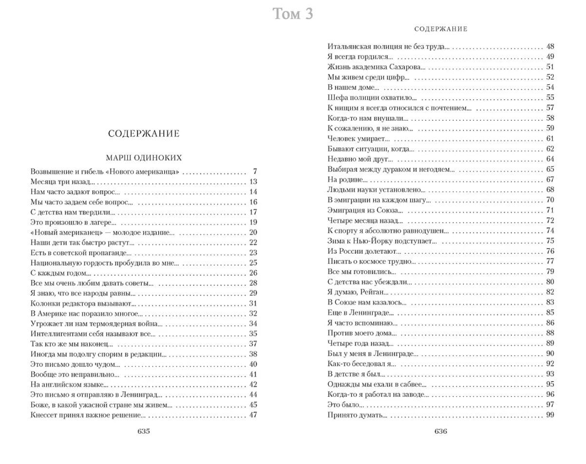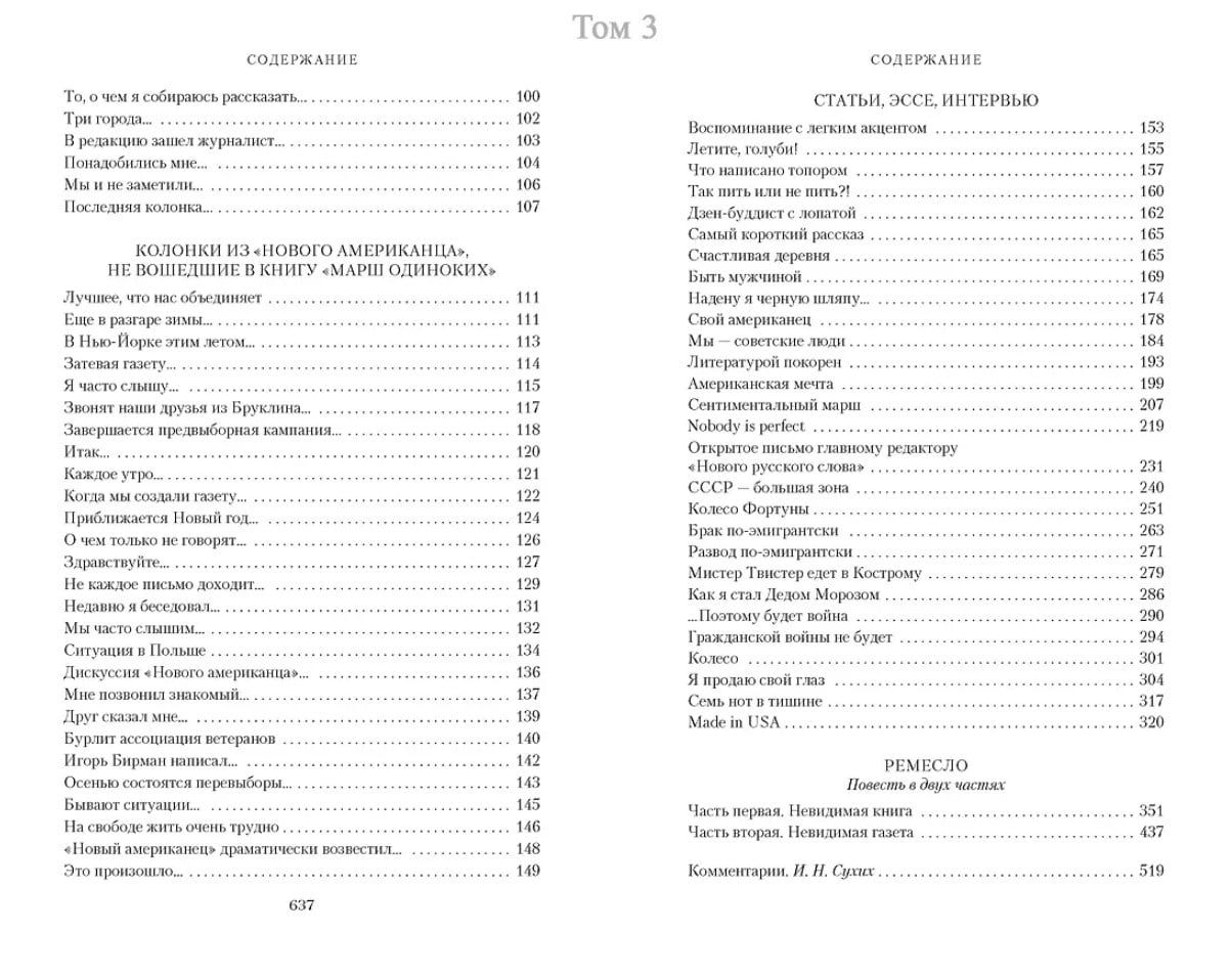 В третий том вошли книги «Марш одиноких» и «Ремесло». В 1980–1982 годах Довлатов вел рубрику в еженедельной газете «Новый американец», являясь ее главным редактором. Часть материалов, опубликованных в газете, Довлатов впоследствии объединил в сборник «Марш одиноких». Сам писатель считал газетную работу не менее важной, чем художественное творчество. В данном томе впервые в полном объеме представлены статьи, эссе, фельетоны, интервью, относящиеся к двухлетней работе С. Довлатова в «Новом американце».