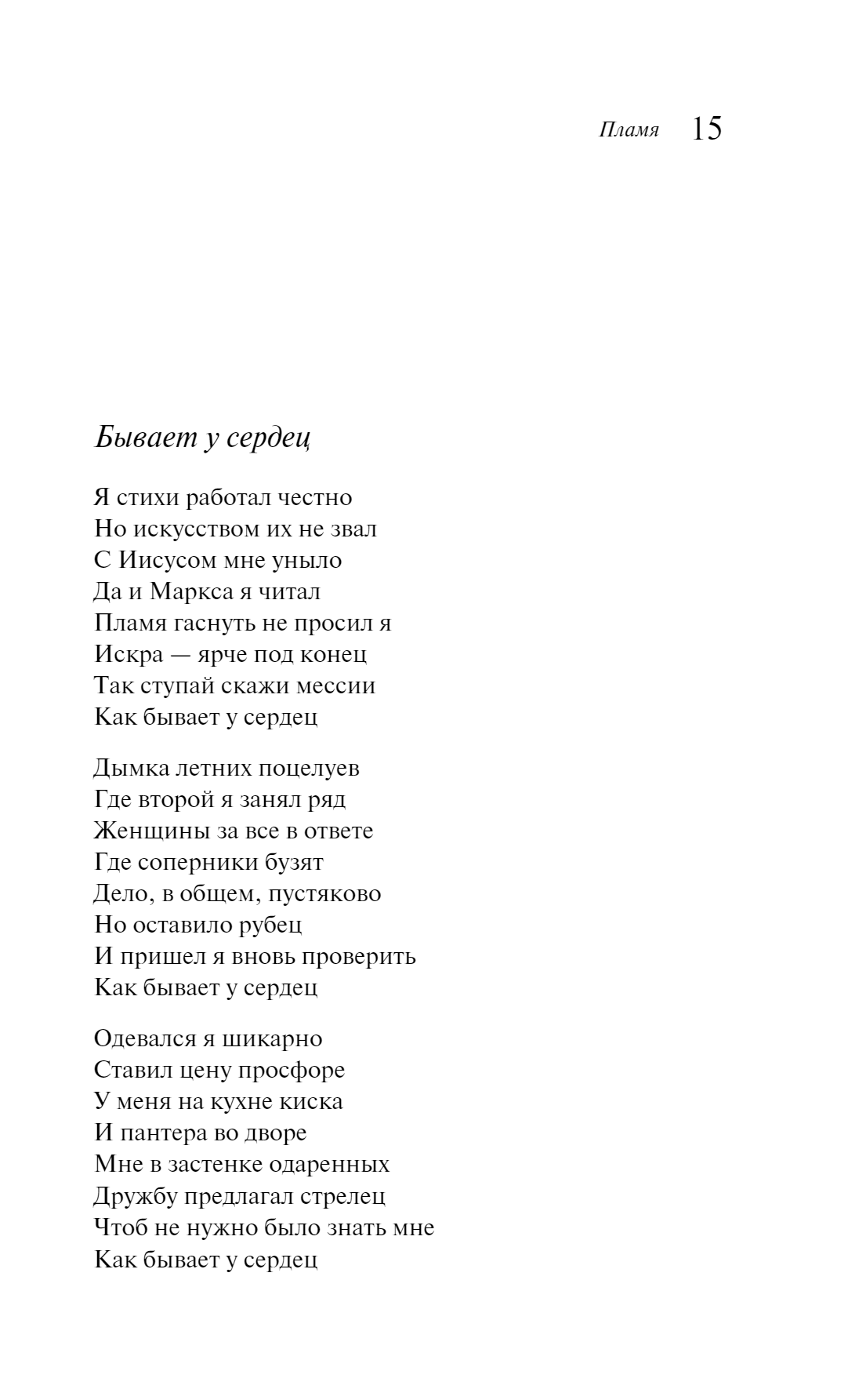 «Пламя» — последняя работа Леонарда Коэна. Несколько поколений по всему миру выросло, слушая его альбомы. «Пламя» — это возможность узнать о самых сокровенных мыслях и чувствах поэта и музыканта, которого не стало в 2016 году. Эта книга стала итогом его жизни, прожитой остроумно и с размахом, она стала своего рода прощанием.