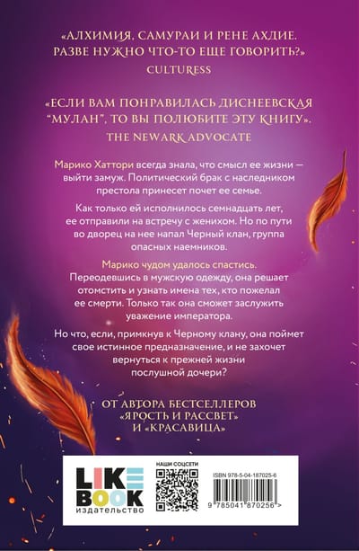 «Пламя в тумане» — завораживающее азиатское фэнтези о самопожертвовании, чести, любви и семейных ценностях. Как будто «Мулан» встречается с «Игрой престолов». От автора мировых бестселлеров «Красавица» и «Ярость и рассвет». Марико Хаттори всегда знала, что смысл ее жизни — выйти замуж. Политический брак с наследником престола принесет почет ее семье. Как только ей исполнилось семнадцать лет, ее отправили на встречу с женихом. Но по пути во дворец на нее напал Черный клан, группа опасных наемников. Марико чудом удалось спастись. Переодевшись в мужскую одежду, она решает отомстить и узнать имена тех, кто пожелал ее смерти. Только так она сможет заслужить уважение императора. Но что, если, примкнув к Черному клану, она поймет свое истинное предназначение и не захочет вернуться к прежней жизни послушной дочери?