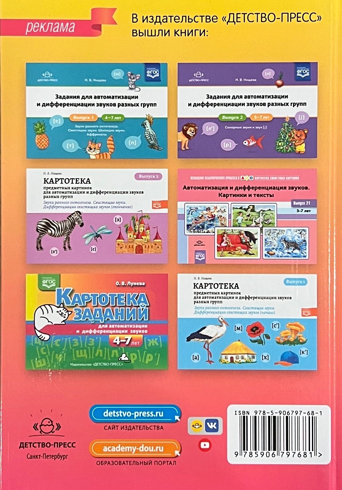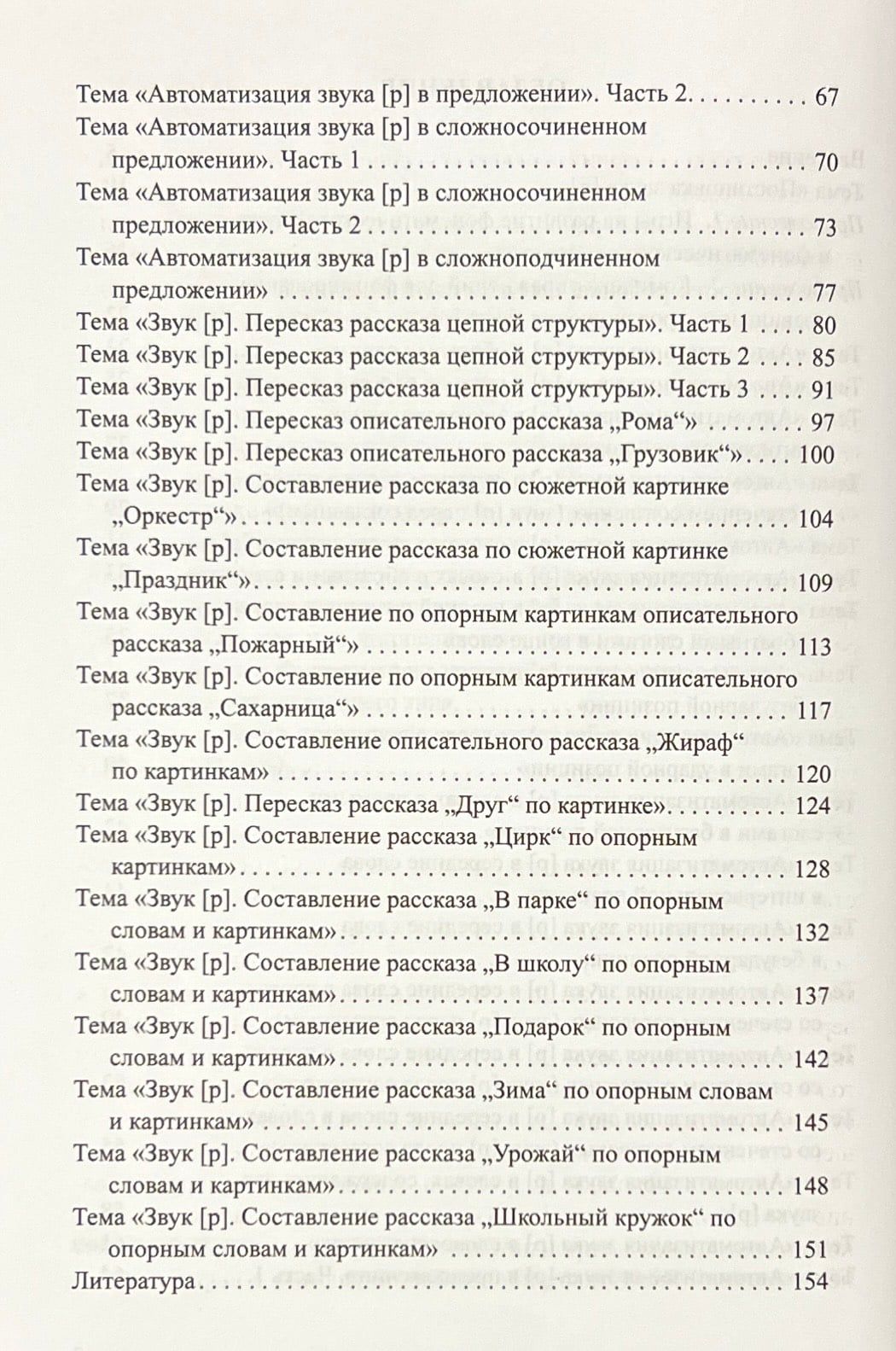 В книге представлены подробные планы занятий по постановке и автоматизации звука [р]. Приводятся многообразные игры с большим количеством словесного материала, подробно рассмотрены варианты пересказа и составления рассказов по опорным словам и картинкам. Материал может быть использован как для проведения занятий в логопедических пунктах ДОО, так и в логопедических группах для детей с ФФНР, а также на занятиях по звуковой культуре речи в группах ДОО общеразвивающего типа.