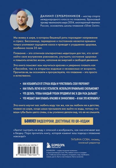 Но и это еще не все! В книге вас ждет сюрприз — QR-коды, по которым вы получите доступ к авторским видеоурокам. Рекомендации автора, его подробные тренировки и упражнения помогут вам освоить идеальный кроль и научиться получать удовольствие от плавания.