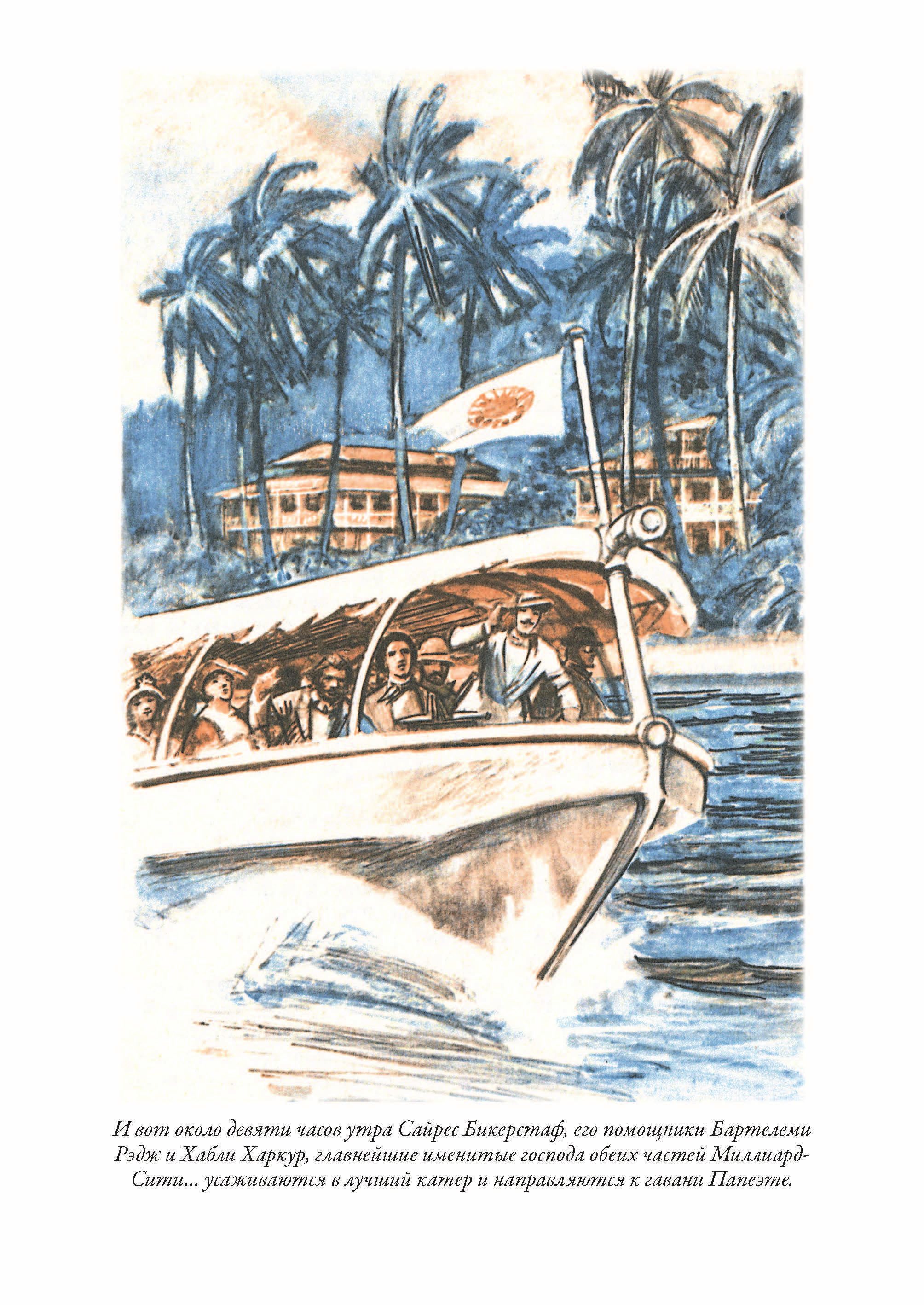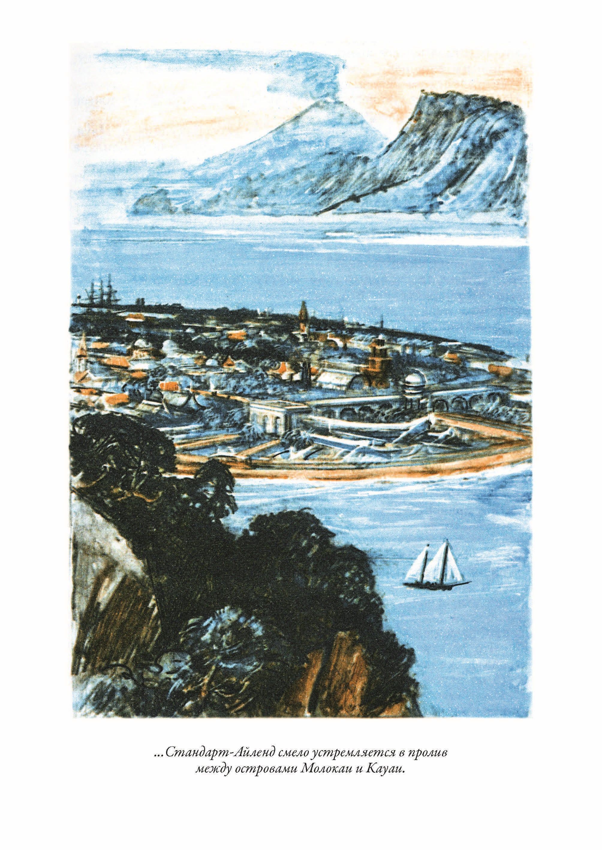В 1862 году Жюль Верн показал свое недавно написанное сочинение о путешествии отважных героев на воздушном шаре известному парижскому издателю Пьеру Этцелю, и тому понравилось, как начинающий писатель удачно поместил описание технических новинок своего времени в увлекательную оболочку приключенческого романа. В результате Этцель сделал Верну заманчивое предложение — писать по три романа в год за фиксированную плату. Условие со стороны издателя было одно — «обозначить все географические, геологические, физические и астрономические познания, накопленные современной наукой, и пересказать их в занимательной и живописной форме». Жюль Верн охотно согласился. Так началась серия его произведений, объединенных под общим названием «Необыкновенные путешествия». Роман «Плавучий остров» в нее входит, ведь в нем писатель знакомит своих читателей с географией нескольких архипелагов Тихого океана и особенностями жизни на островах, затерянных в безбрежных водных просторах. Однако, Жюль Верн не изменяет своему приему — эти сведения вкраплены у него в рассказ о приключениях его героев. На сей раз фантазия писателя создала огромный остров-корабль, ставший домом для американских миллиардеров и бороздящий просторы океана. Роман «Плавучий остров» в этом издании проиллюстрирован замечательными рисунками Петра Ивановича Луганского. Будущий художник появился на свет в 1911 году в селе Боково Луганской губернии. После окончания семилетки он уехал в Харьков, где поступил в одно из старейших художественных учебных заведений Украины, которое являлось своеобразным аналогом училища Штиглица в Петербурге. Вскоре Петр Иванович стал универсальным профессионалом. Он рисовал акварелью и углем, занимался литографией, гравюрой и станковой живописью. Цветовая гамма его иллюстраций к «Плавучему острову» лаконична: голубоватые тона передают безбрежные дали, палевые и светло-коричневые — свет и тени переднего плана. При этом Луганский всегда точен в передаче джунглей, морских просторов, парусников, экзотических нарядов… Создается впечатление, что он сам путешествовал по свету вместе с героями Жюля Верна. Где и как он исследовал натуру, которую рисовал? Вряд ли теперь можно ответить на этот вопрос. Быть может, Луганский просто обладал мощным творческим воображением, которое позволяло ему верно воспроизводить картины жизни, которой он никогда воочию не видел? Ведь художник никогда не покидал пределы Советского Союза.