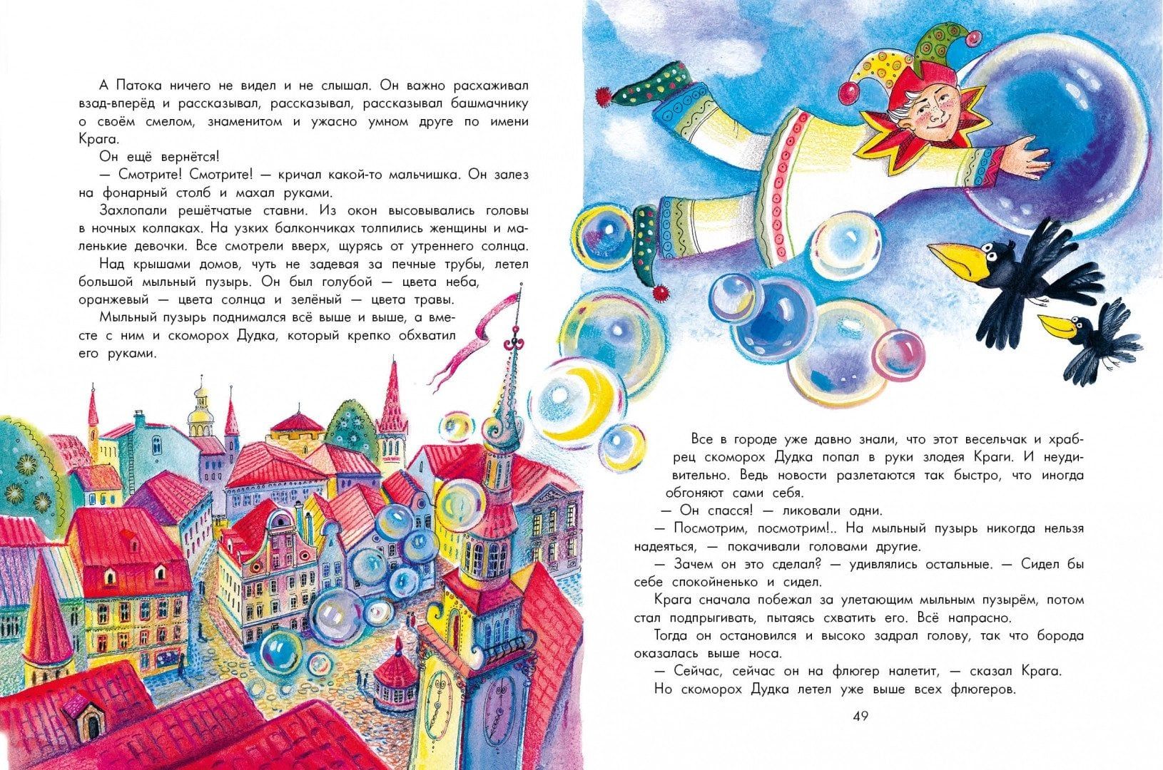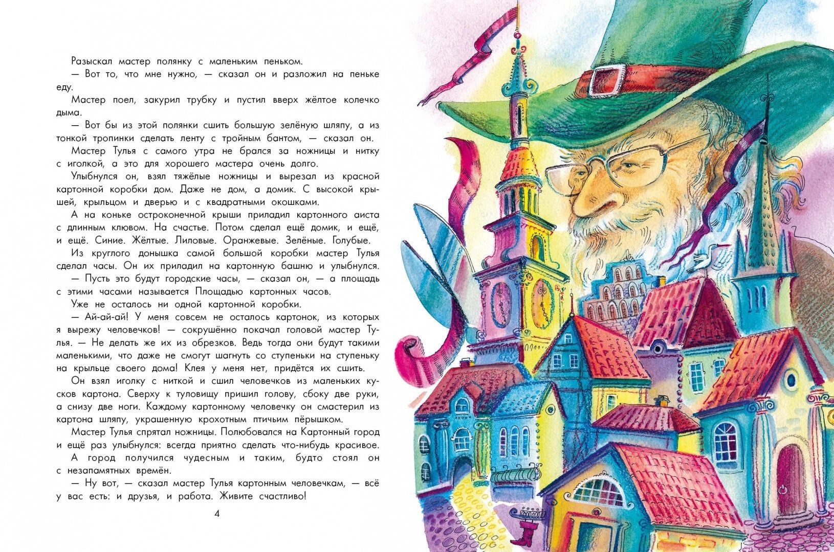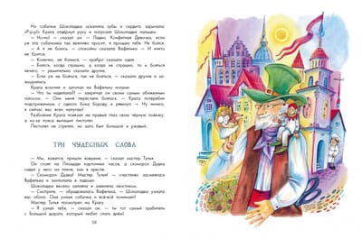Добрый мастер Тулья смастерил сказочный город из разноцветных шляпных коробок: с площадью, башней с часами, с красивыми домиками. А из маленьких кусочков картона Тулья сшил человечков, да только концы ниток отрезать поленился. А рыжий разбойник Крага тут же решил, что можно дергать за эти ниточки и управлять человечками. Но на помощь жителям приходит отважная девочка Вафелька и ее верная собачка Шоколадка, а так же храбрый скоморох Дудка... Очень добрая и немножко наивная сказка, в которой пускают мыльные пузыри и выпекают сладости, разбойник пугает ржавым пистолетом и всех спасают храбрые герои. Леонид Яхнин - замечательный детский писатель и переводчик - не зря написал сказку про сказочный город: по образованию он был архитектором. А в издательство его привел случай: институт, с которым он сотрудничал, находился в одном здании с детской редакцией, куда Леонид Яхнин решил принести свои стихи. С тех пор детская литература стала его судьбой, а за перевод «Алисы в Стране чудес» он был награжден Международным дипломом имени Андерсена. Для детей младшего школьного возраста.
