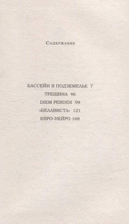 Люди разного возраста, пола, круга общения ходят в бассейн. На дорожках бассейна они находят чувство общности, утешение и смысл. Однако, когда на дне появляется трещина, все меняется. Без ежедневной медитативной рутины Элис постепенно теряет связь с реальностью. Подобно воде, уходящей из бассейна, ее память утекает в никуда, а дочь Элис чувствует, как ее мать, неотвратимо ускользающая от нее, становится на самом деле только ближе, как исчезает многолетняя трещина между ними. Написанный в завораживающей элегической манере роман настраивает на принятие естественного хода вещей и утверждает, что все совершающееся в мире разумно, во всем есть щемящая и преображающая красота.