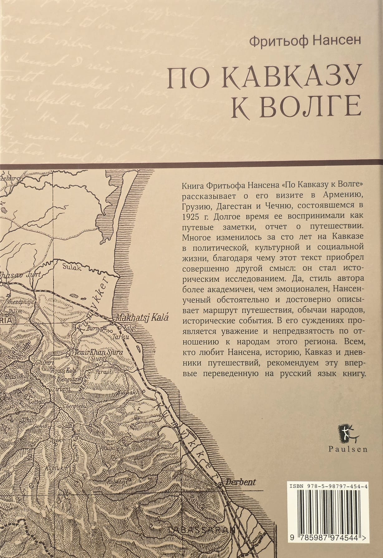 Книга Фритьофа Нансена «По Кавказу к Волге» рассказывает о его визите в Армению, Грузию, Дагестан и Чечню, состоявшемся в 1925 г. Долгое время ее воспринимали как путевые заметки, отчет о путешествии. Многое изменилось за сто лет на Кавказе в политической, культурной и социальной жизни, благодаря чему этот текст приобрел совершенно другой смысл: он стал историческим исследованием. Стиль автора более академичен, чем эмоционален, обстоятельно и достоверно описывает маршрут путешествия, обычаи народов, исторические события. В его суждениях проявляется уважение и непредвзятость по отношению к народам этого региона.