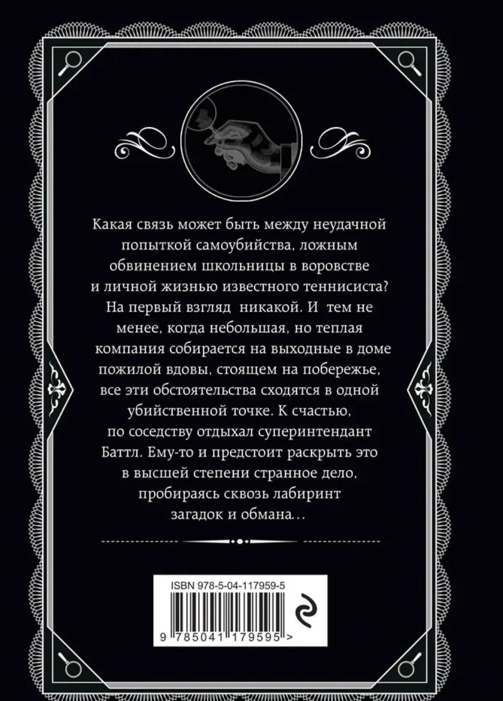 Какая связь может быть между неудачной попыткой самоубийства, ложным обвинением школьницы в воровстве и личной жизнью известного теннисиста? На первый взгляд, никакой. И, тем не менее, когда небольшая, но теплая компания собирается на выходные в дом пожилой вдовы, стоящий на побережье, все эти обстоятельства сходятся в одной убийственной точке. К счастью, по соседству отдыхал суперинтендант Баттл. Ему-то и предстоит раскрыть это в высшей степени странное дело, пробираясь сквозь лабиринт загадок и обмана…