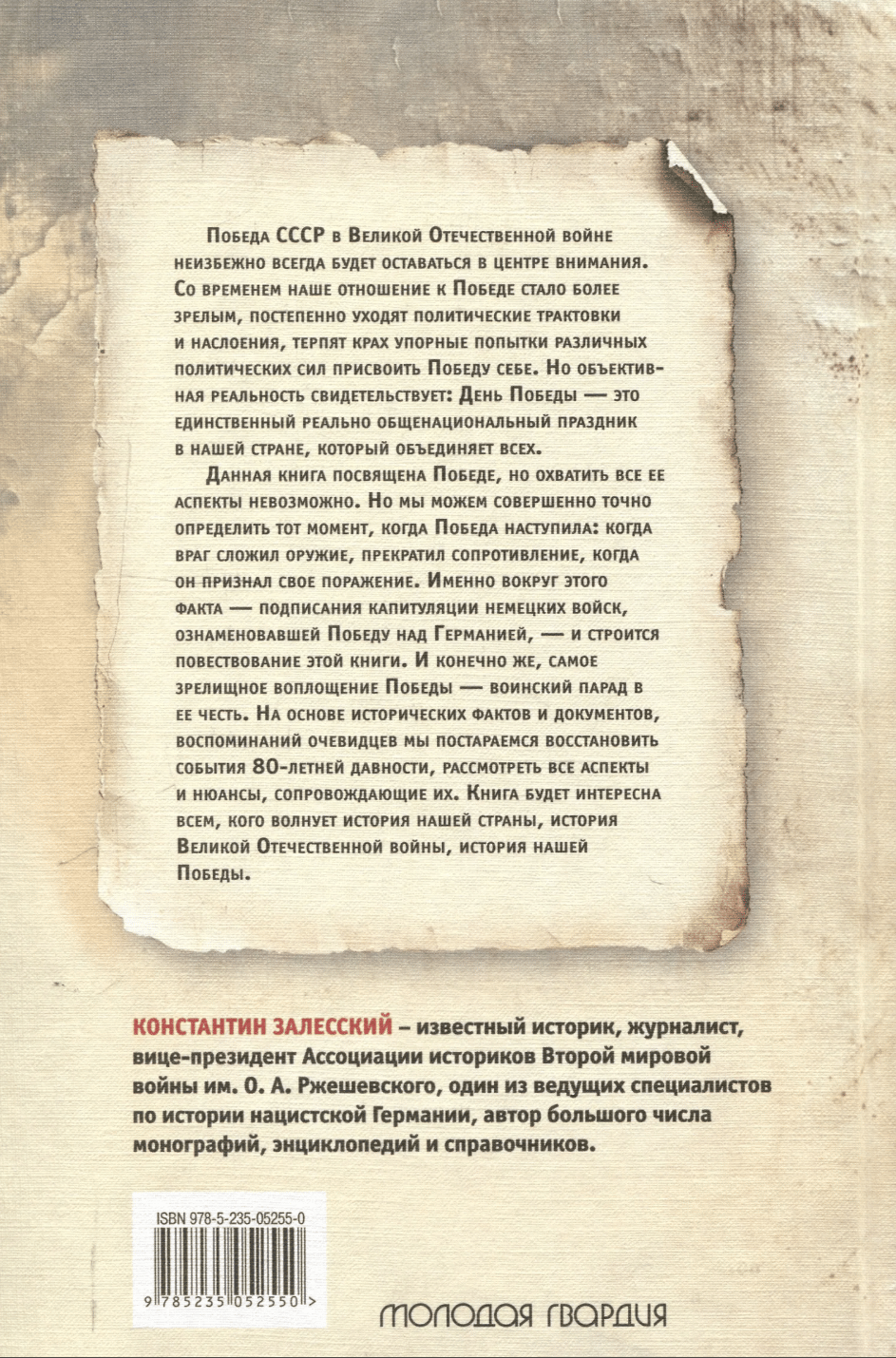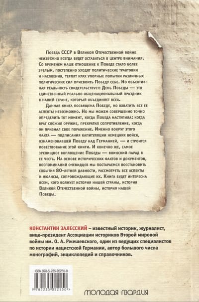 Данная книга посвящена Победе, но охватить все ее аспекты невозможно. Но мы можем совершенно точно определить тот момент, когда Победа наступила: когда враг сложил оружие, прекратил сопротивление, когда он признал свое поражение. Именно вокруг этого факта — подписания капитуляции немецких войск, знаменовавшей Победу над Германией, — и строится повествование этой книги. И конечно же, самое зрелищное воплощение Победы — воинский парад в ее честь. На основе исторических фактов и документов, воспоминаний очевидцев мы постараемся восстановить события 80-летней давности, рассмотреть все аспекты и нюансы, сопровождавшие их.