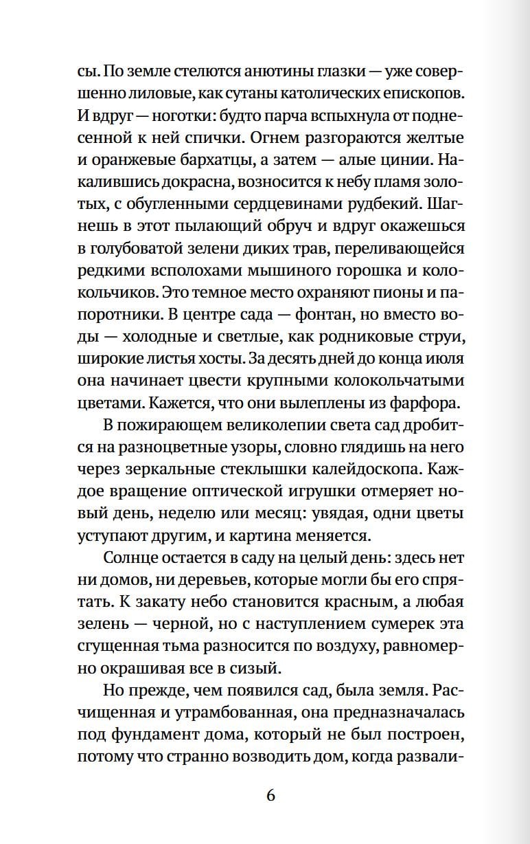 «Пройдут десятки лет, и никто не вспомнит имени, зарастут тропинки и рассыпятся в прах дома. И только сад будет расти и множиться, пока не охватит собой весь поселок и тот не сгинет в ненасытном цветущем лоне».