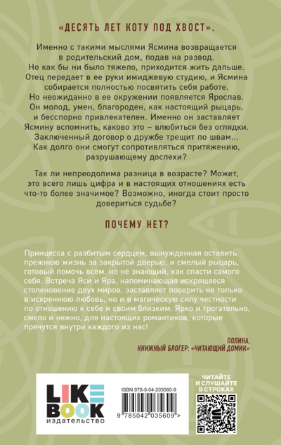 молод, умен, благороден, как настоящий рыцарь, и бесспорно привлекателен. Именно он заставляет Ясмину вспомнить, каково это — влюбиться без оглядки. Заключенный договор о дружбе трещит по швам… Как долго они смогут сопротивляться притяжению, разрушающему доспехи?