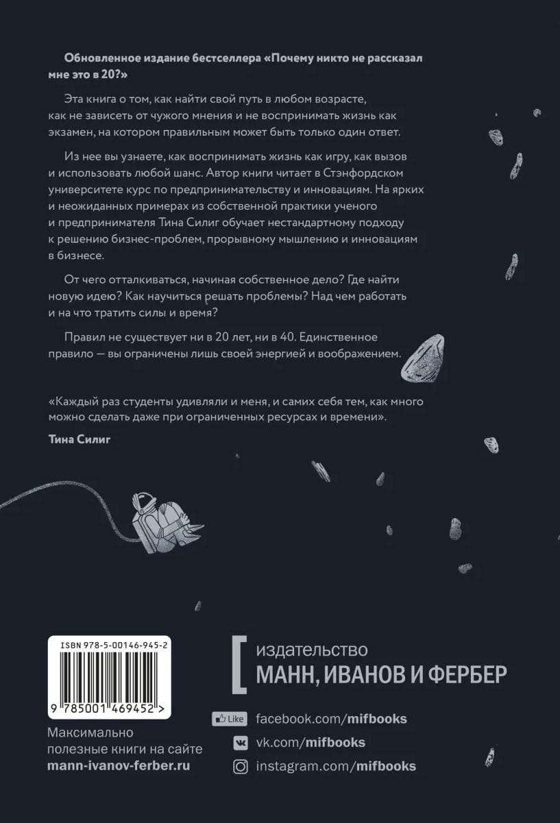 Предыдущую версию книг очень часто покупали, советовали и дарили молодым ребятам 18–20 лет, которые только начинали свой путь, поэтому мы решились на ребрендинг. Это издание подготовлено автором к десятилетнему юбилею выхода книги в свет.