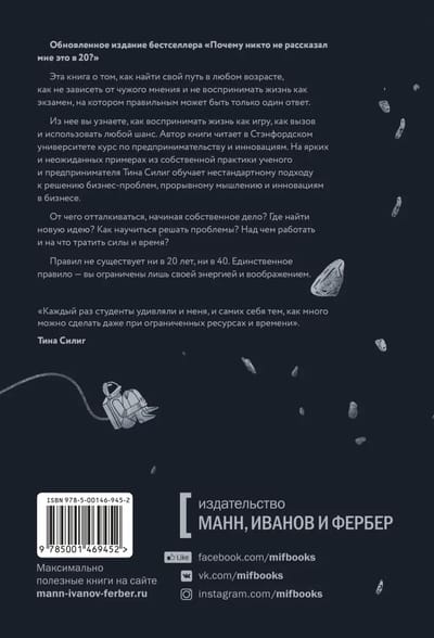 Это обновленное издание бестселлера «Сделай себя сам». Тина Силиг включила в книгу множество принципиально новых идей, появившихся за прошедшее десятилетие, и две дополнительные главы.