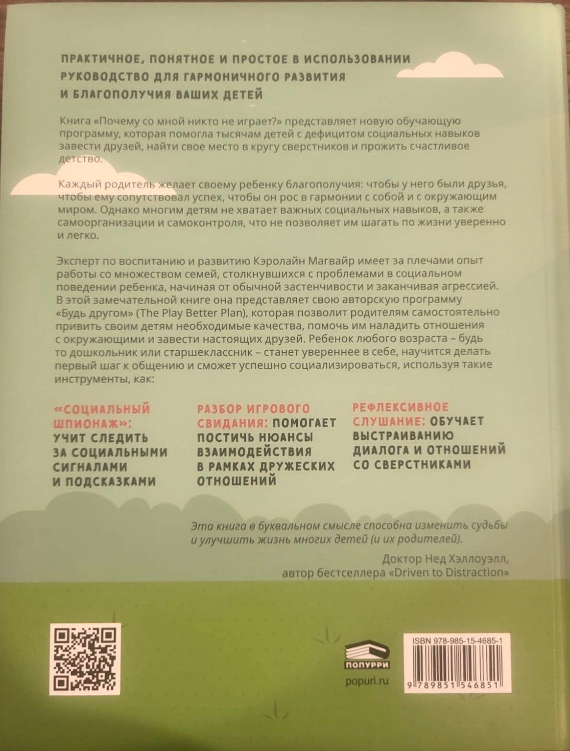 В основе данной книги лежат накопленные автором за многие годы научные знания в области терапевтических и коррекционных методик работы с детьми, имеющими нарушения управляющих функций мозга. Описанная здесь программа "Будь другом" окажется полезной при целом ряде возрастных проблем и диагнозов, она универсальна и способна помочь всем детям, испытывающим трудности в общении с окружающими. А предложенные в ней тренинги и задания позволят им найти общий язык со сверстниками, постепенно обзавестись друзьями и научиться верить в себя. Адресована тем, кто хочет помочь своему ребенку справиться с давлением и реакцией других людей, чтобы успешно функционировать в социуме.