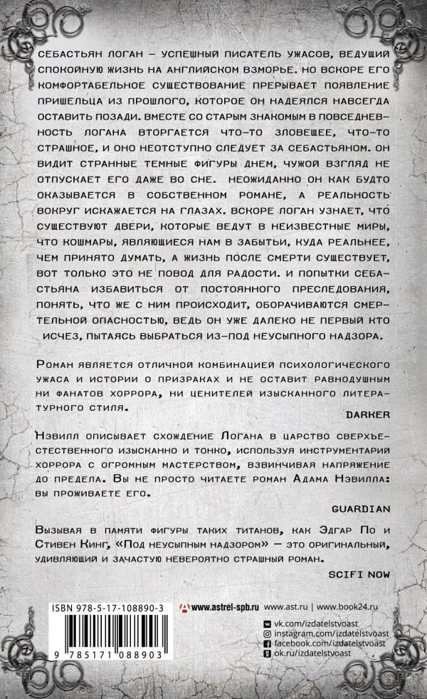 Себастьян Логан — успешный писатель ужасов, ведущий спокойную жизнь на английском взморье. Но вскоре его комфортабельное существование прерывает появление пришельца из прошлого, которое он надеялся навсегда оставить позади. Вместе со старым знакомым в повседневность Логана вторгается что-то страшное, и оно неотступно следует за Себастьяном. Он видит странные темные фигуры днем, чужой взгляд не отпускает его даже во сне. Неожиданно он как будто оказывается в собственном романе, а реальность вокруг искажается на глазах. Вскоре Логан узнает, что существуют двери, которые ведут в неизвестные миры, что кошмары, являющиеся нам в забытьи, куда реальнее, чем принято думать, а жизнь после смерти существует, вот только это не повод для радости. И попытки Себастьяна избавиться от постоянного преследования, понять, что же с ним происходит, оборачиваются смертельной опасностью, ведь он уже далеко не первый кто исчез, пытаясь выбраться из-под неусыпного надзора.