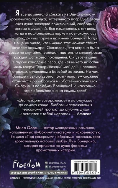 Оказалось, эта встреча была вовсе не случайна. Брендан тщательно спланировал каждый шаг моего похищения. Он увозит меня в глухие канадские леса, где нет ничего на сотни миль вокруг. Теперь каждый мой день наполнен страхом, отчаянием и борьбой за жизнь. Но чем больше я узнаю своего похитителя, тем сложнее становится разобраться в собственных чувствах. Смогу ли я полюбить Брендана? И насколько эта любовь опасна на самом деле?