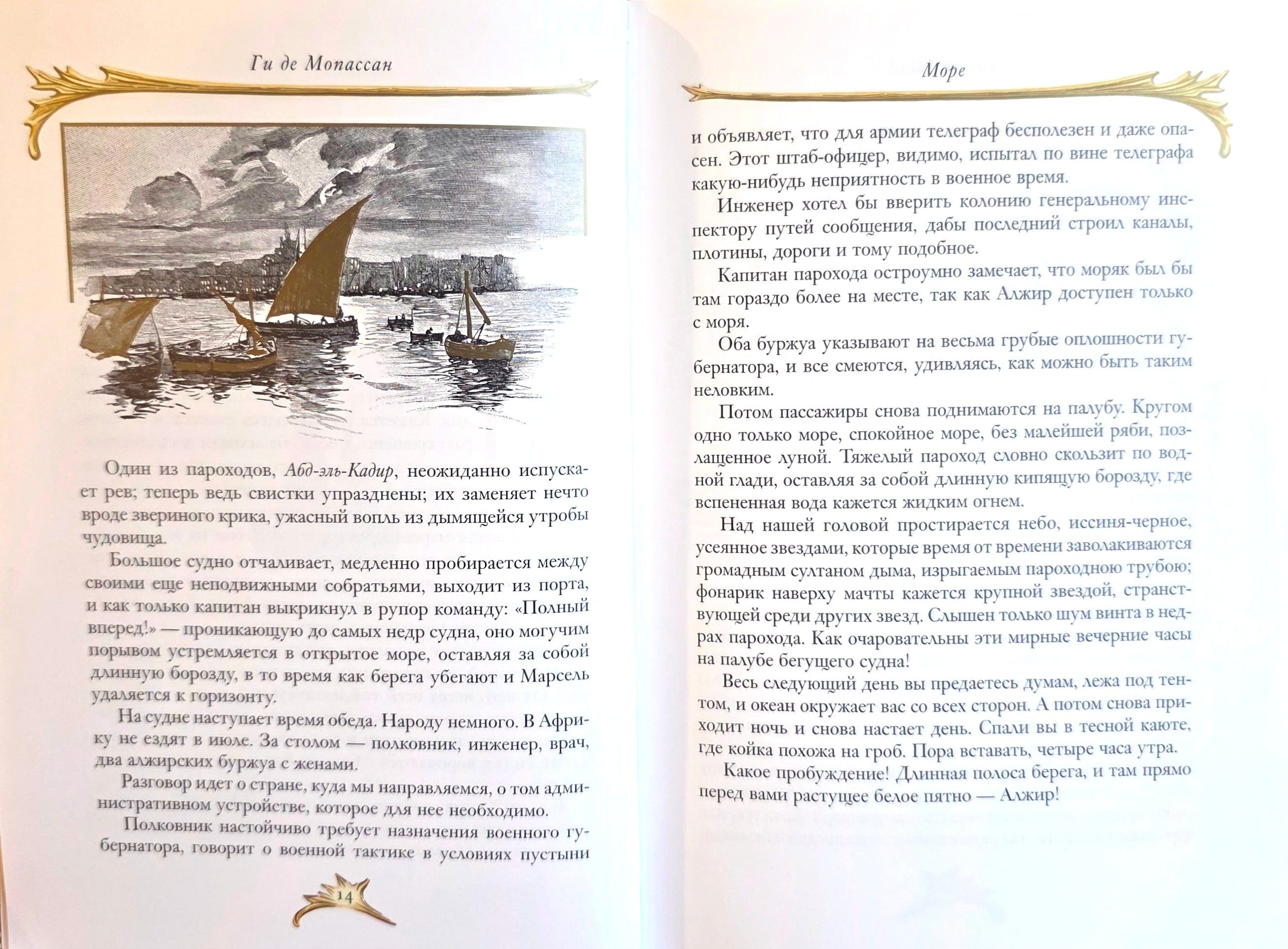 Все оттенки захватывающей прозы великого Мопассана в иллюстрациях известных художников предстанут в виде реальной картины жизни перед вами, дорогой читатель, как только вы откроете это великолепное издание крупнейшего классика мировой литературы. Около 150 иллюстраций в каждом томе этого полного собрания сочинений великого знатока человеческих душ позволят вам почувствовать себя участником событий, описываемых в книге. Роскошное, стильно оформленное подарочное издание. Изящный переплёт книги выполнен с рельефным золотым тиснением. Книга с трёхсторонним золотым обрезом и шёлковым ляссе.