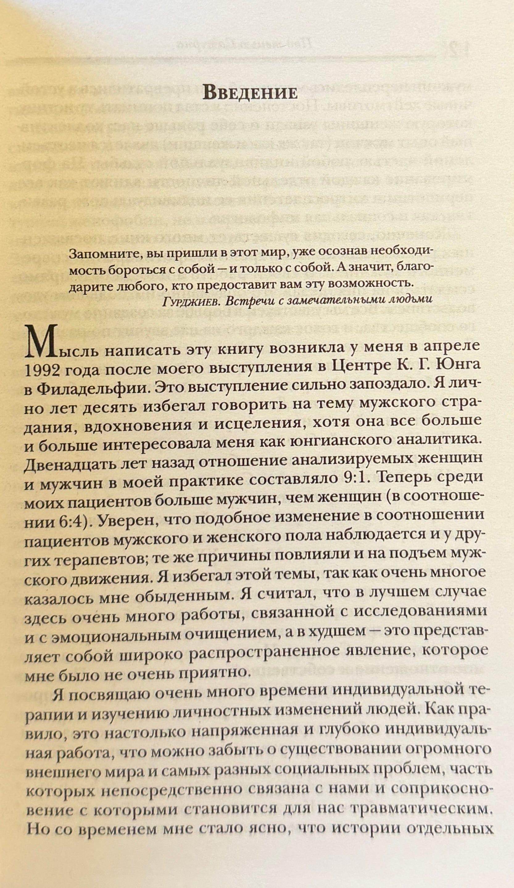 В своей книге юнгианский аналитик Джеймс Холлис обращается к проблеме психологических травм мужчин и предлагает способы их исцеления. Только разрешив свои проблемы, в частности связанные с воздействием негативного материнского комплекса, отсутствием необходимого образца маскулинности и ритуалов инициации, современный мужчина сможет почувствовать себя зрелым человеком, способным доверять себе и строить доверительные отношения с окружающими.