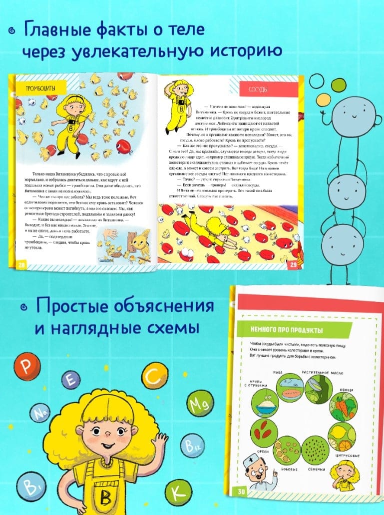 Что у меня внутри? Почему стучит сердце? Как переваривается пища? Почему я расту? Маленькая, но полезная Витаминка поможет все объяснить так, чтобы малышу стало понятно. А еще она расскажет о своих приключениях внутри организма, о том, как ей удалось найти причину болезни, разрешить спор органов и всех их помирить.