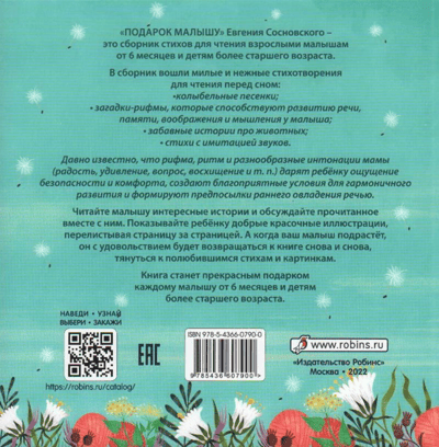 «Подарок малышу» Евгения Сосновского – это сборник стихов для чтения взрослыми малышам от 6 месяцев и детям более старшего возраста.