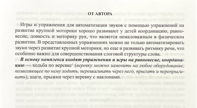 Данное пособие включает в себя комплекс упражнений для автоматизации звуков посредством развития тактильных ощущений и крупной моторики. Выполнение предложенных упражнений совершенствует у детей координацию движений, равновесие, ловкость и моторику рук, способствует сенсорной интеграции, что является немаловажным в развитии детей.
