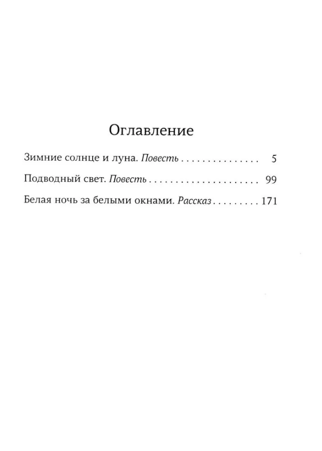Подводный свет — три повести о том, что история не исчезает, а продолжает жить даже тогда, когда действующие лица уже давно забыты. Места действия — Подмосковье, Балтийское море, Санкт-Петербург.