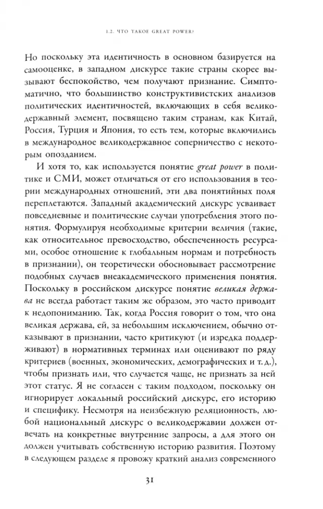 Несмотря на большую историческую глубину, «Погоня за величием» — книга скорее про настоящее, чем про прошлое. Ее главная цель — дать глубокую, исторически обоснованную интерпретацию негласных правил, которые формируют великодержавную идентичность сегодняшней России и косвенно вовлекают Россию в один международный кризис за другим.