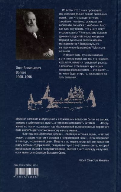 Ныне, в год 100-летия собразования СЛОНа (Соловецкого лагеря особого назначения), приходит время вновь вспомнить о страшных социальных вихрях, терзавших Россию все XX столетие. И в поистине безбрежном море «лагерной» литературы книга Волкова ясно выделяется своей тональностью. «Светлый лик Христовой Церкви», «светящие огоньки веры», «светлые люди», ставшие «светом и истиной в непроглядной ночи», «огни паникадил и лампад», «солнечный свет» — вместе и по отдельности всё это наполняет книгу особым содержанием, свидетельствует о внутреннем свете, который преображает мысли и поступки человека, вселяет в него надежду на лучшее, если является отблеском Высшего Света.