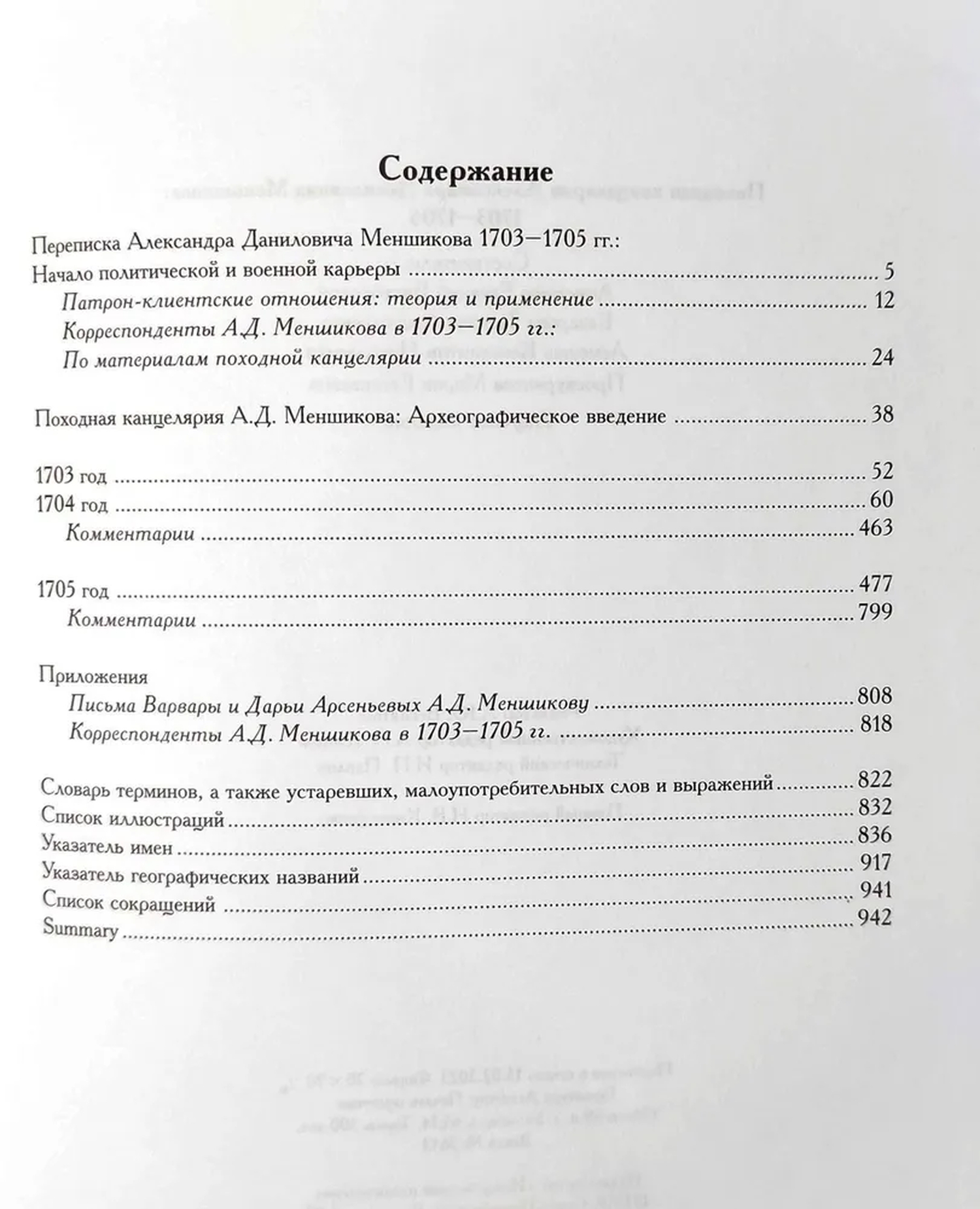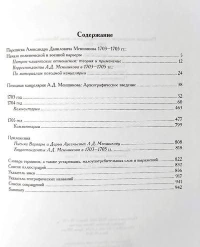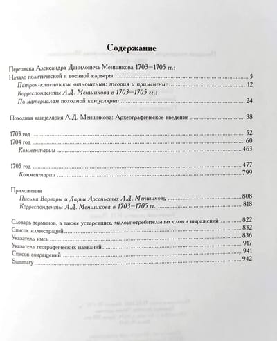 В издании публикуются материалы походной канцелярии ближайшего сподвижника Петра Великого — Александра Даниловича Меншикова (1673—1729), хранящиеся в Научно-историческом архиве Санкт-Петербургского института истории РАН и Российском государственном архиве древних актов. В сборник вошло более 830 документов — писем, донесений и рапортов, полученных А. Д. Меншиковым в 1703—1705 гг. Среди его корреспондентов выдающиеся деятели Петровской эпохи — П. М. и Ф. М. Апраксины, Р. В. и Я. В. Брюсы, Ф. А. Головин, Г. И. Головкин, П. П. Шафиров, Б. П. Шереметев. Документы содержат сведения о военных действиях в Ингерманландии в первые годы Северной войны (1700—1721), строительстве и обороне Санкт-Петербурга, а также об организации управления завоеванными территориями с многонациональным населением и их интеграции в Российское государство. Письма корреспондентов А. Д. Меншикова дают возможность выявить и проанализировать систему формальных и неформальных связей, которые позволили бывшему царскому денщику войти в состав российской правящей элиты.