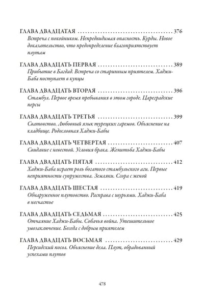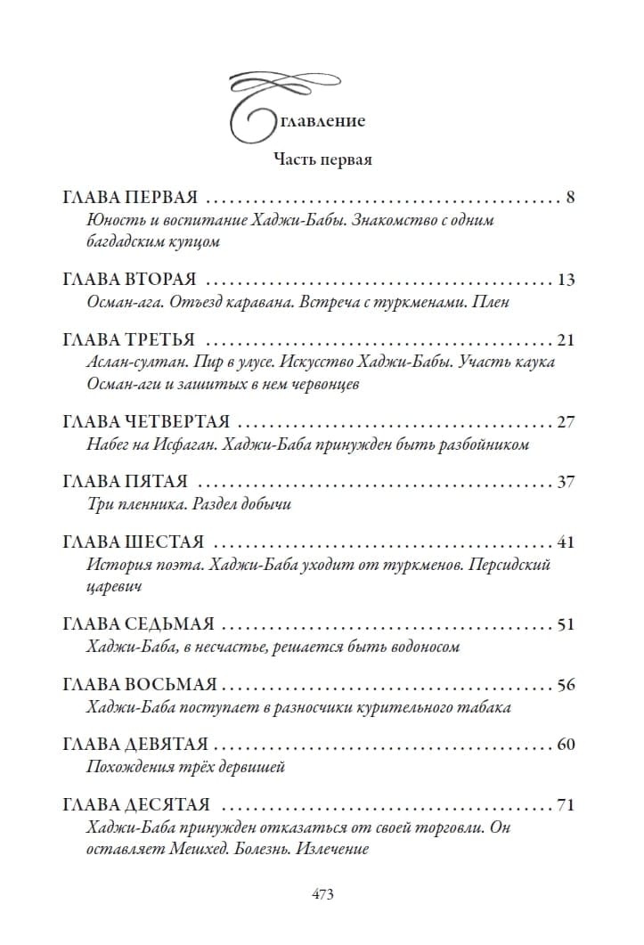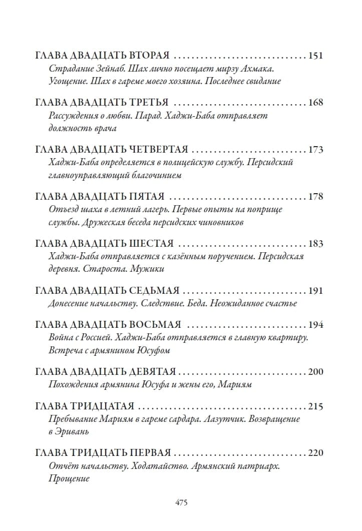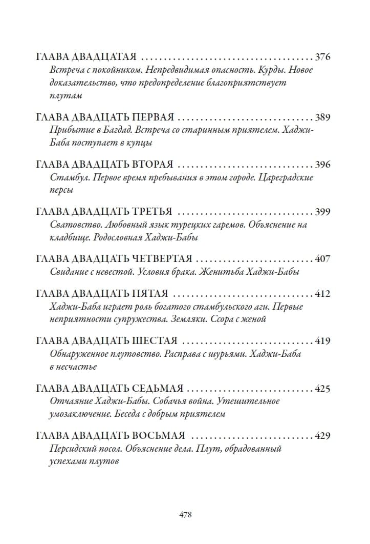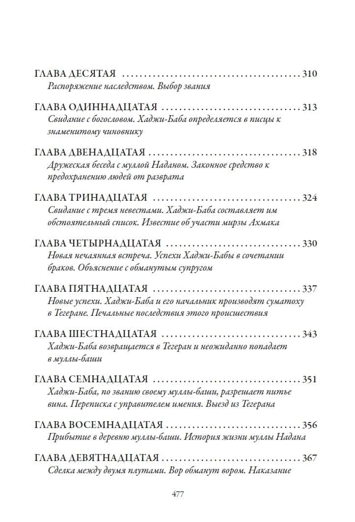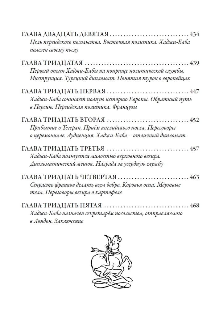 Роман «Похождения Хаджи-Бабы из Исфагана» — наиболее известное произведение английского дипломата и писателя Джеймса Джастина Мориера (1780–1849). Главный герой романа, слегка напоминающий Ходжу Насреддина или Тиля Уленшпигеля, беспощадно высмеивает человеческую подлость, ханжество и лживость. Текст в блестящем переводе полиглота Осипа Сенковского позволяет в полной мере насладиться атмосферой восточного мира. Издание украшают рисунки шотландского художника XIX в. Гарольда Миллара и американского живописца Сайруса Болдриджа.