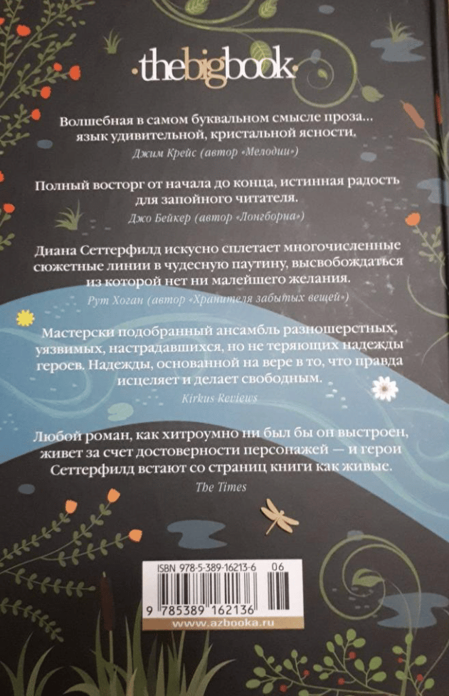 Роман Дианы Сеттерфилд, прославленного автора «Тринадцатой сказки», признанного шедевра современной английской прозы, который заставил критиков заговорить о возвращении золотого века британского романа, овеянного именами Шарлотты и Эмили Бронте и Дафны Дюморье, и разошелся по всему миру на 40 языках тиражом свыше 2 миллионов экземпляров.