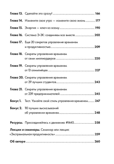 Тогда он опросил миллиардеров, предпринимателей, олимпийских чемпионов и сформулировал основные принципы управления временем, которые работают в реальной жизни. Благодаря им вы сможете удвоить вашу продуктивность без переработок и перенапряжения.