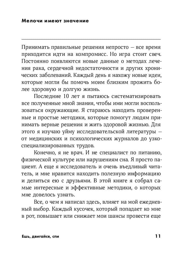 А ведь именно эти «мелочи», как утверждает Том Рат, оказывают существенное влияние на продолжительность и качество нашей жизни. Не важно, какой образ жизни вы ведете сегодня, всегда можно измениться, чтобы прожить долгую и полноценную жизнь.