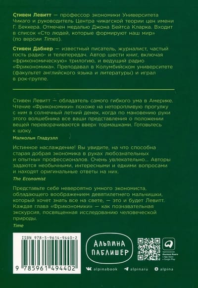 Перевернув с ног на голову все представления о законах экономики, эта провокационная книга стала мировым бестселлером. Экономист Стивен Левитт и журналист Стивен Дабнер рассекречивают тайные механизмы экономики, связывая их с человеческой психологией. Организованная преступность, торговля крэком, сайты знакомств, ку-клукс-клан, аборты, инновации в работе полиции и огрехи системы образования — все в нашей жизни может быть рассмотрено через призму экономики. И это нередко интереснее крутого детектива!