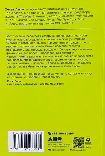 Патриархальная культура веками навязывала женщине идеалы кротости, жертвенного служения и смирения, роль домашнего ангела и необходимость быть «милой». Героинь Хелен Льюис милыми не назовешь. Их имена были связаны со скандалами. Сложные, нетерпимые, неудобные, порой агрессивные, порой смешные — оригиналки, чудачки, выскочки, они с предельной прямотой озвучивали проблемы и показывали аномальность привычного, ломали стереотипы и заставляли общество пересматривать гендерные установки, меняли уклад, правовые нормы и государственные институты — в интересах всех остальных. Благодаря им женщины обрели те права, которыми, порой даже не задумываясь, пользуются сейчас: право распоряжаться своим телом и голосом, своим временем и доходами, право ошибаться и исправлять ошибки. Полная ярких и точных политических наблюдений, одновременно забавных и информативных, эта книга — трезвая, горькая, веселая и бесстрашная история феминизма, его побед и провалов и манифест всех тех женщин, которые не готовы быть «удобными».
