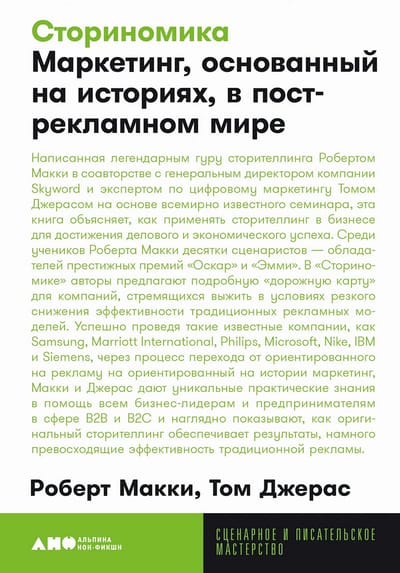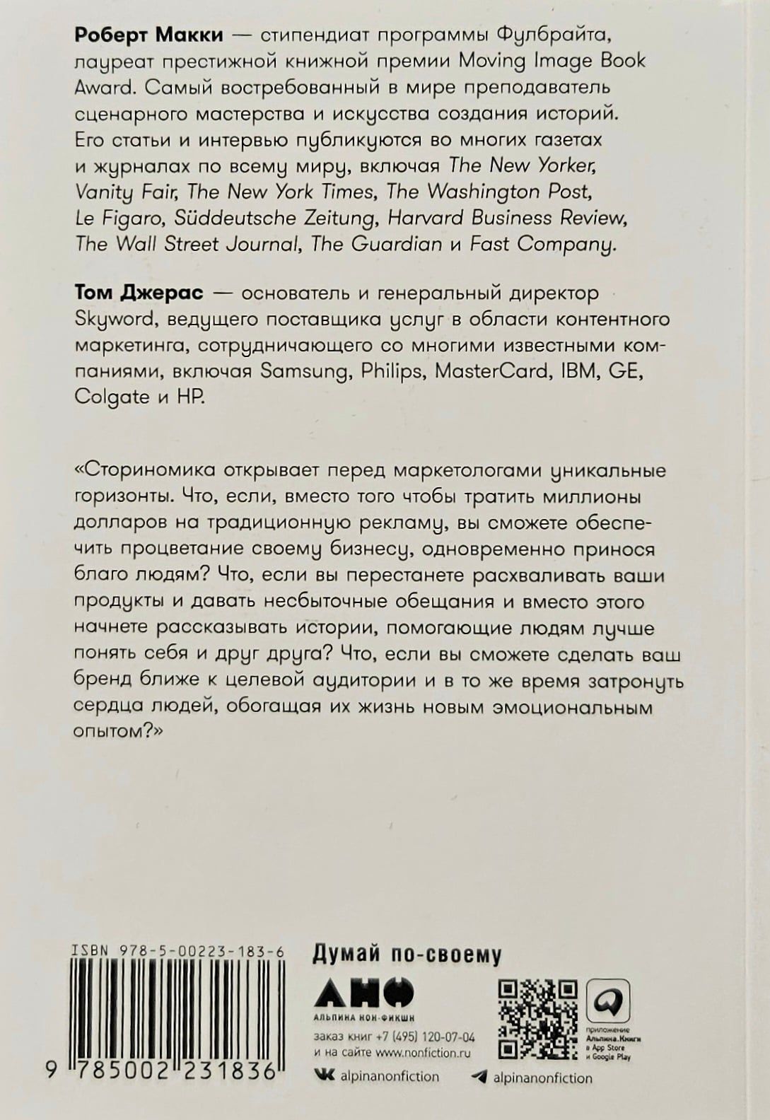В новой книге «Сториномика» Макки совместно с экспертом по цифровому маркетингу Томом Джерасом предлагает подробную «дорожную карту» для компаний, стремящихся выжить в условиях резкого снижения эффективности традиционных рекламных моделей. Успешно проведя такие известные компании, как Samsung, Marriott International, Philips, Microsoft, Nike, IBM и Siemens, через процесс перехода от ориентированного на рекламу на ориентированный на истории маркетинг, Макки и Джерас предлагают эти уникальные практические знания в помощь всем бизнес-лидерам и предпринимателям. Опираясь на примеры десятков ведущих брендов в сфере B2B и B2C, использующих маркетинговые стратегии на основе сторителлинга, «Сториномика» наглядно показывает, как оригинальный сторителлинг обеспечивает результаты, намного превосходящие эффективность традиционной рекламы. Как бренды будут взаимодействовать со своими потребителями уже в обозримом будущем? «Сториномика» отвечает на этот вопрос.