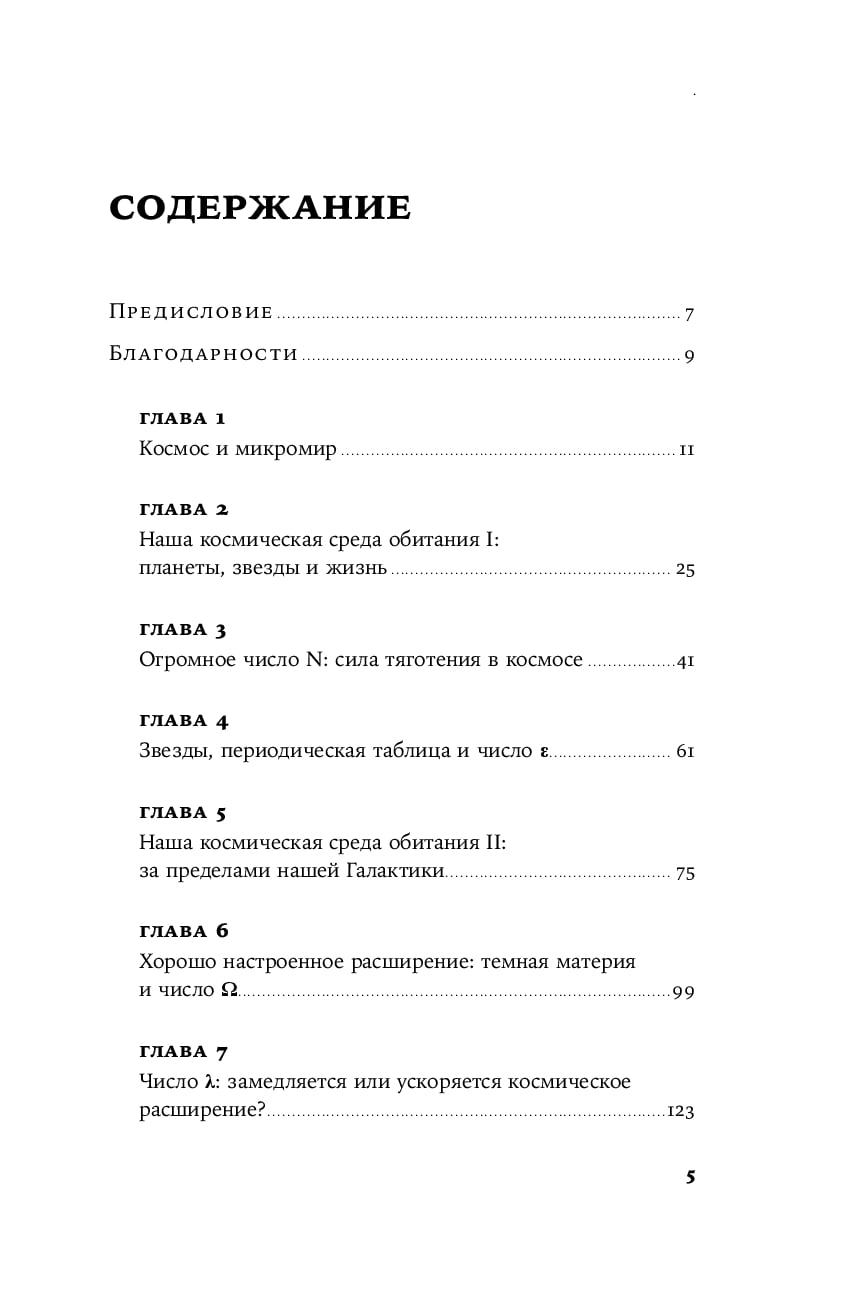 В книге всемирно известного астрофизика, члена Королевского астрономического общества сэра Мартина Риса описываются фундаментальные силы, управляющие нашей Вселенной. Автор утверждает, что расширяющаяся Вселенная может быть определена всего шестью числами: N, e, Ω, l, Q, D, каждое из которых играет особую и решающую роль в ее эволюции, а вместе они определяют ее развитие и потенциал возможностей.